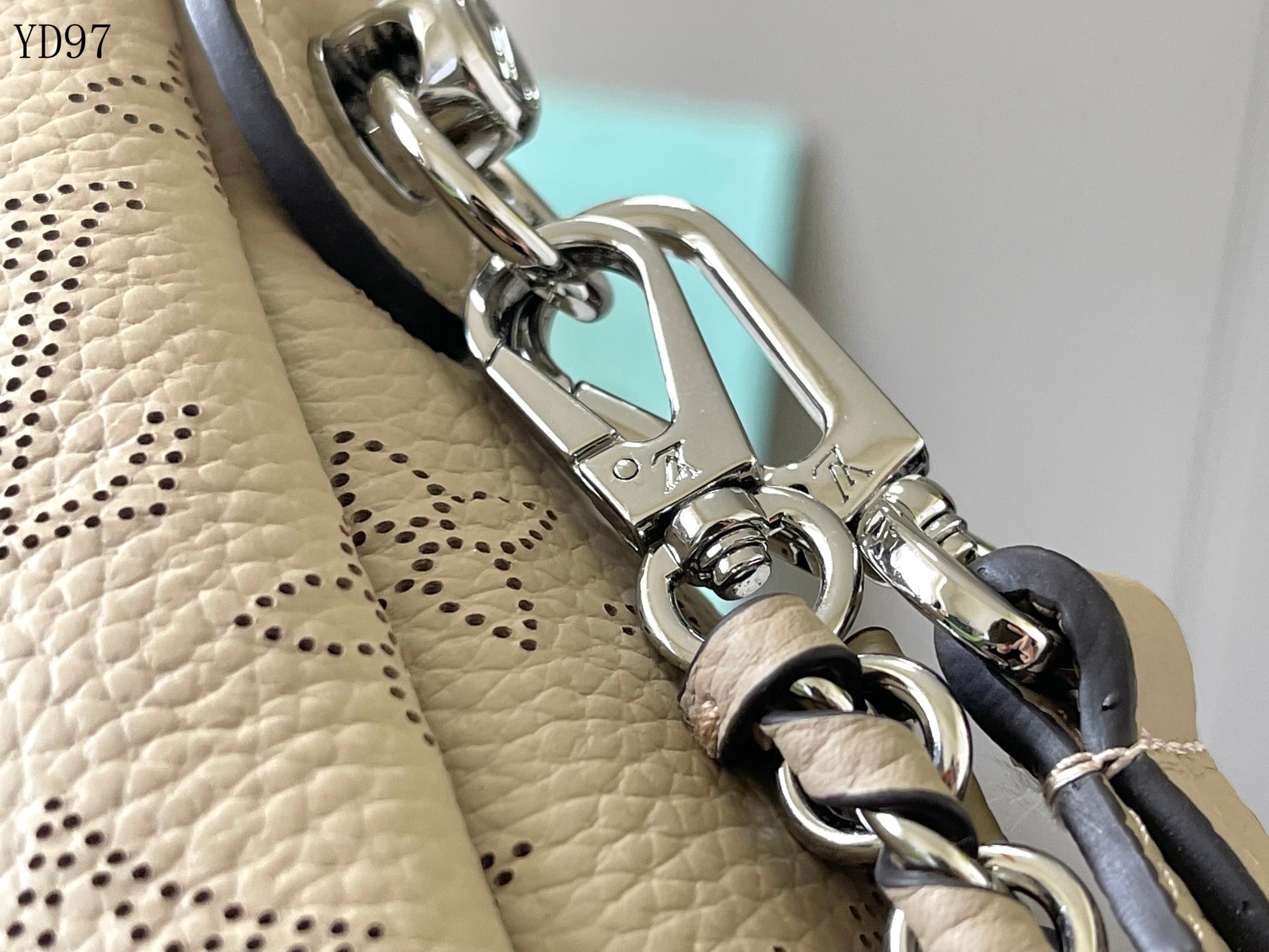 Straps: Removable and adjustable leather shoulder strap + silver-tone chain for hand carry