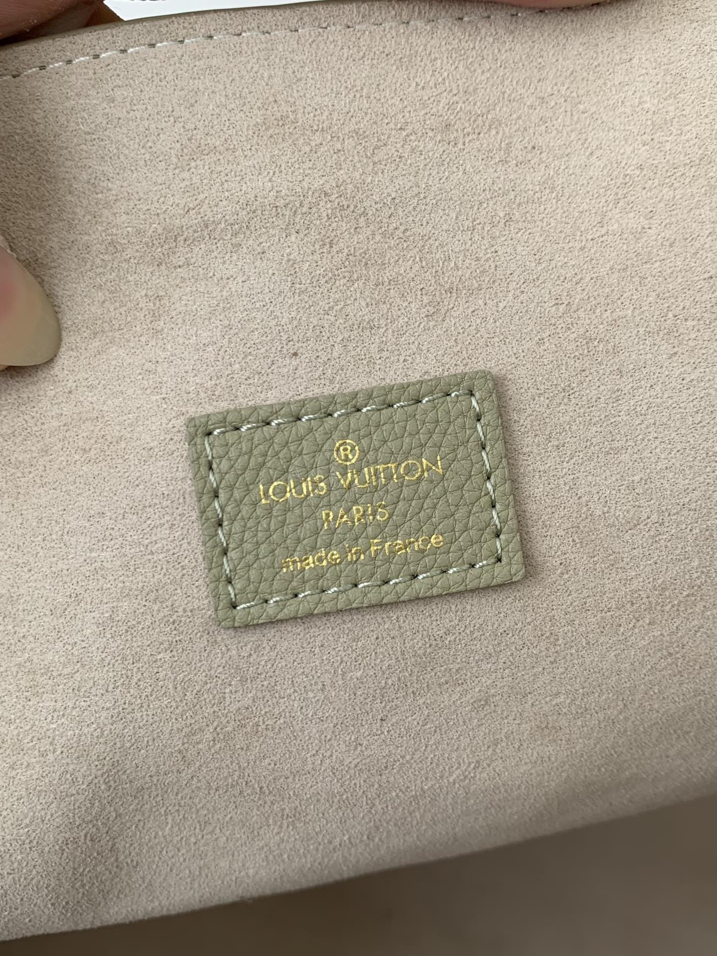 Timeless luxury, reimagined in an earthy olive tone. This exquisite Louis Vuitton tote is crafted from premium calfskin leather, combining sophisticated design with everyday practicality. Paired with a classic monogram pouch and gold-tone LV lock, it’s the ultimate symbol of elegance and function.