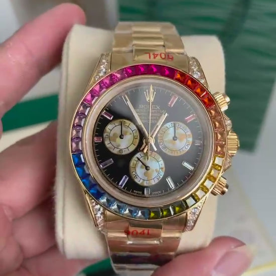Elevate your style with the Rolex Cosmograph Daytona Rainbow, a watch that celebrates individuality and luxury in every detail.