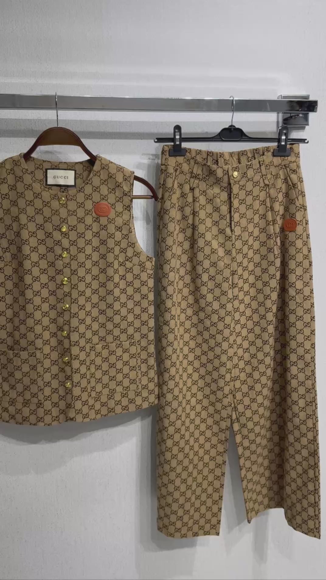 Elevate your style with this Gucci monogram vest and pants set—luxury design for bold, confident looks.