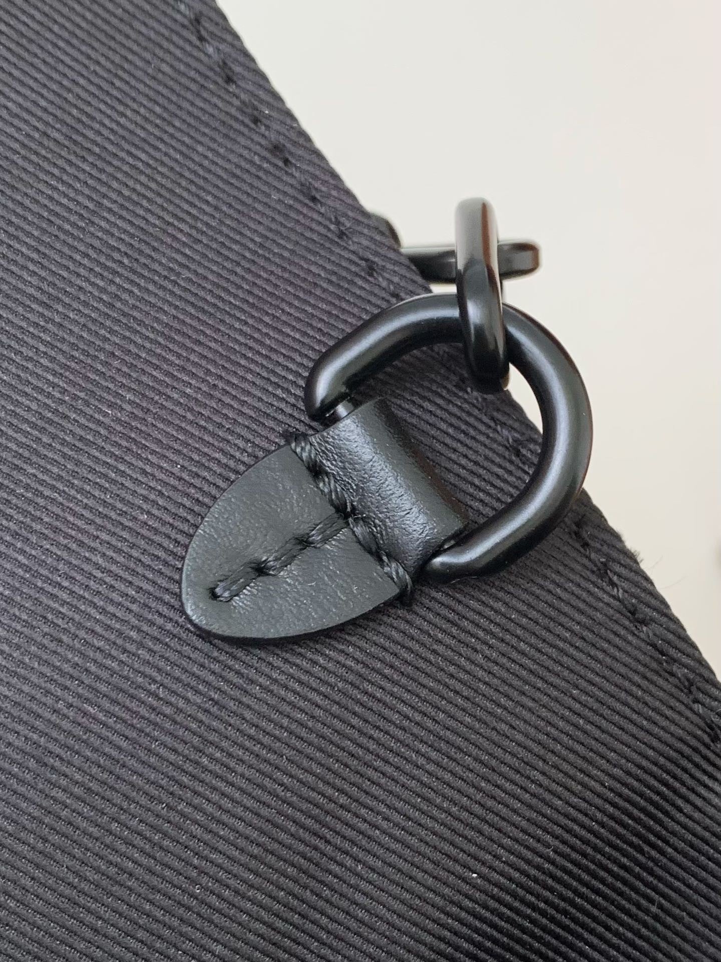 Smooth black leather top handle and adjustable shoulder strap for versatile wear