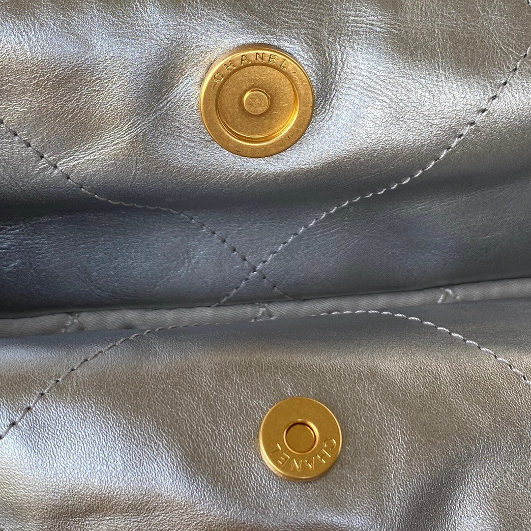 A bold take on a classic design, the Chanel 22 Handbag in metallic silver is perfect for those who love standout accessories. Its spacious yet stylish design makes it suitable for both everyday wear and evening outings, while the silver-tone accents add a contemporary flair to any outfit.
