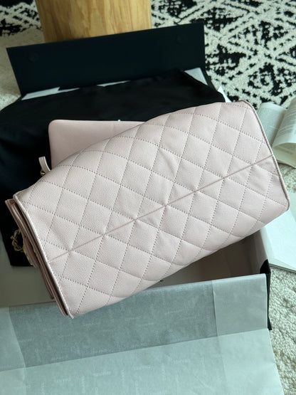 The Chanel 25 Large Handbag in pink is a perfect blend of bold femininity and luxury craftsmanship. Its soft pink shade makes it stand out while remaining versatile enough to pair with a wide range of looks.