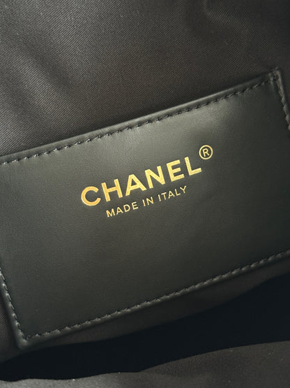Iconic CC logo in gold-tone with chain drawstring closure
