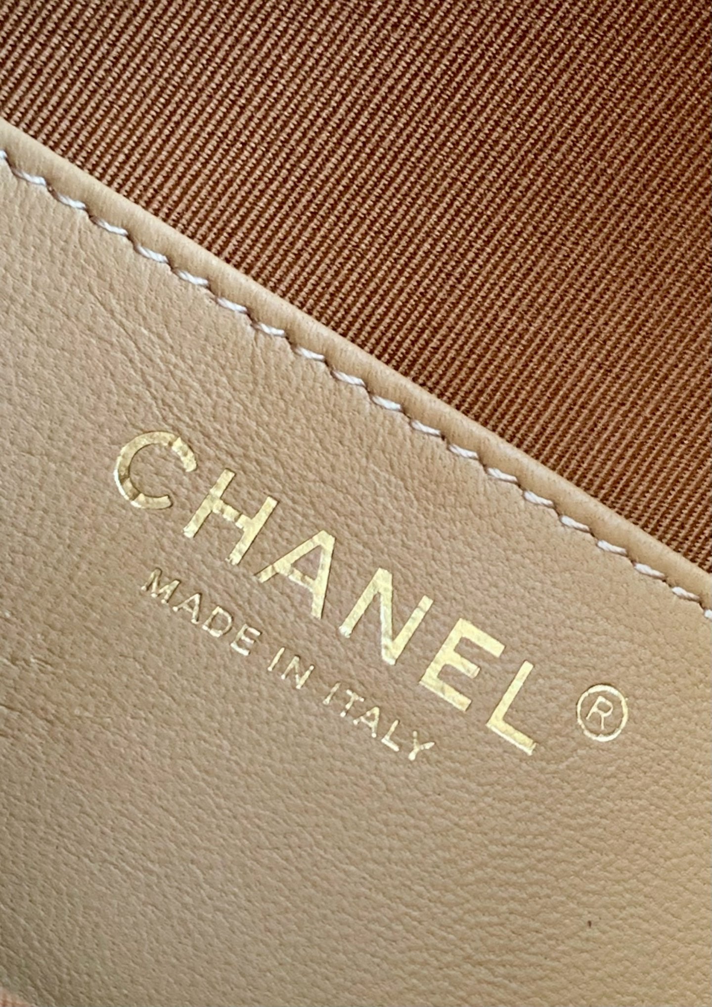 Iconic CC turn-lock closure and chain-drawstring detail for that unmistakable luxury touch.