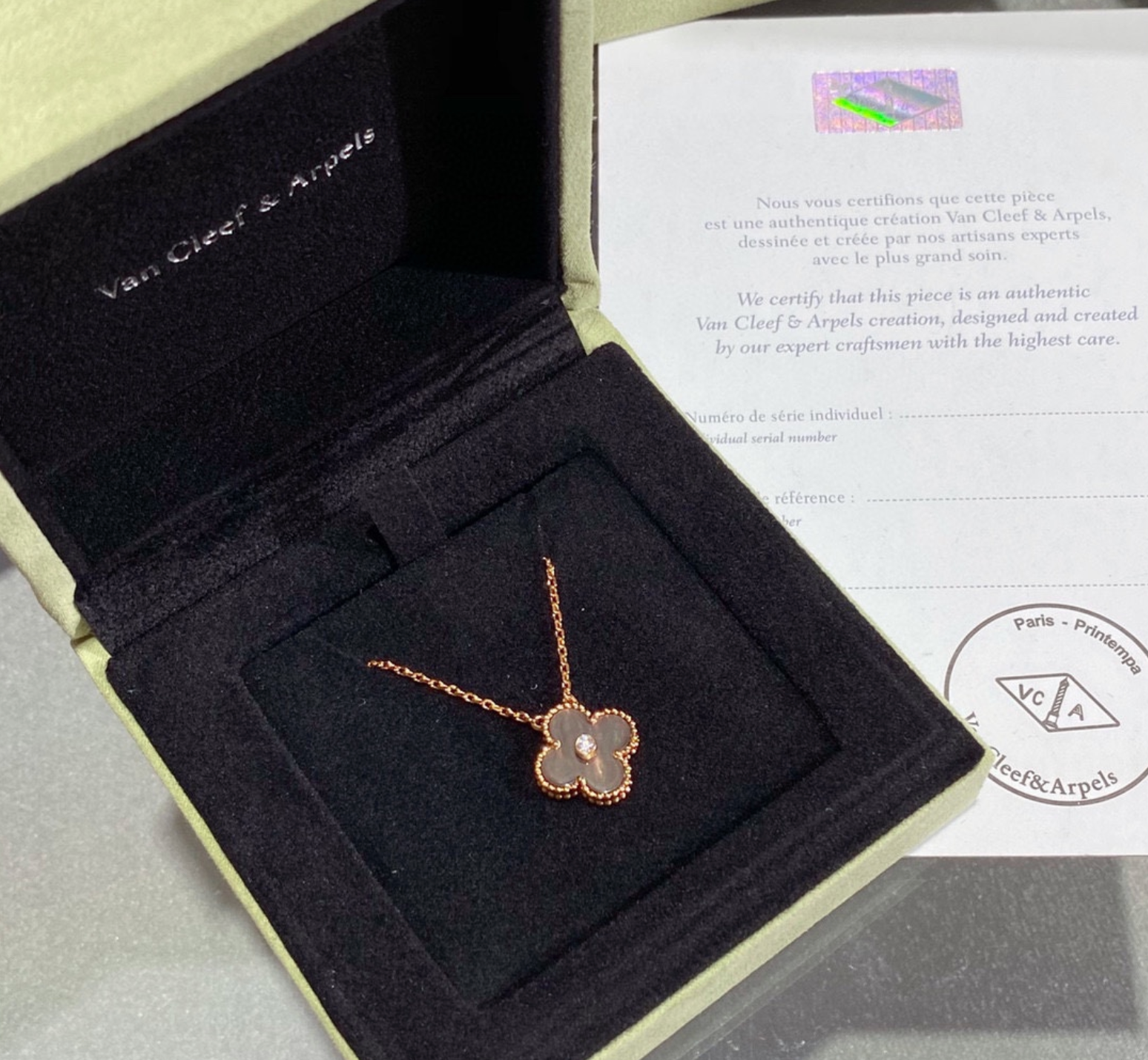 Discover the understated elegance of the Alhambra collection with this grey mother of pearl clover necklace. A timeless blend of sophistication, craftsmanship, and subtle beauty — secure yours today and elevate your jewelry collection.