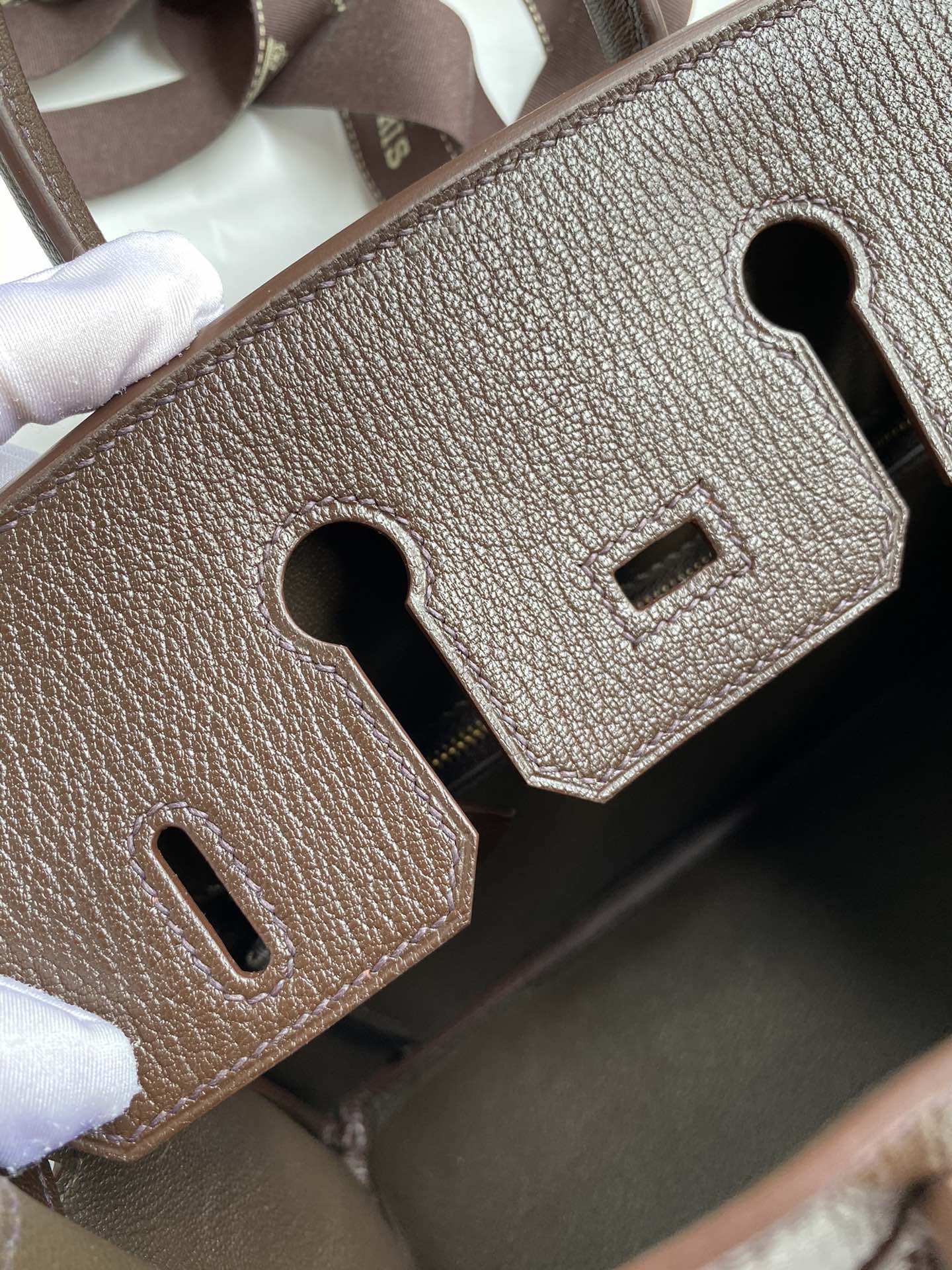 The Hermès Birkin 25 in Chevre (goat leather) is a rare and highly sought-after creation. Its compact size, rich brown color, and radiant gold hardware make it a timeless investment piece, while the luxurious Chevre leather ensures unmatched elegance and durability.