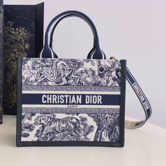 The Dior Book Tote is a modern icon that embodies elegance and practicality. Presented here in the classic Blue Toile de Jouy embroidery, this compact small size version is designed to carry daily essentials while making a bold fashion statement. Its refined craftsmanship and iconic motif make it instantly recognizable and timeless.