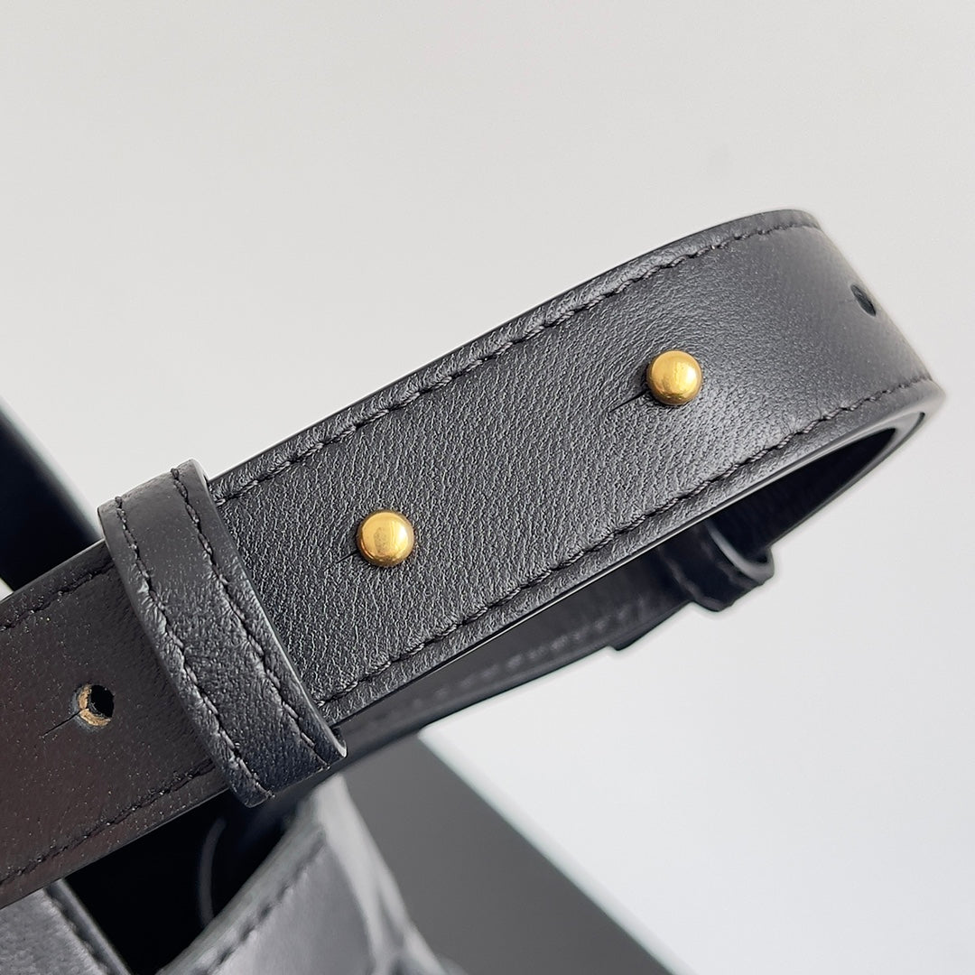 Handles: Dual top leather handles with an adjustable shoulder strap.