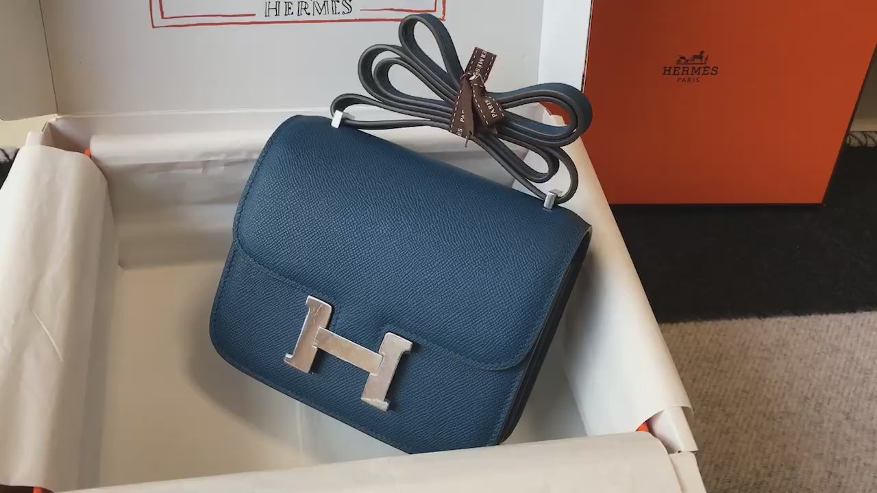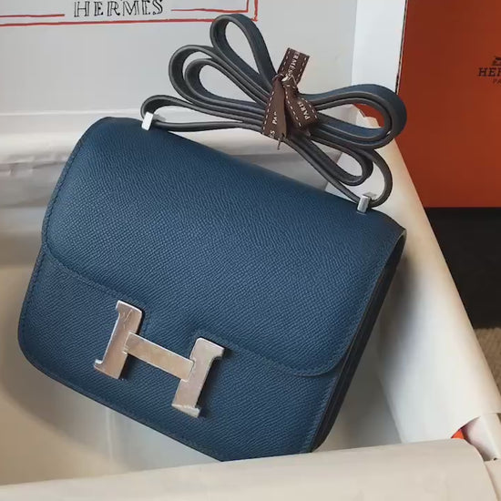 Modern, sleek, and refined – the Hermès Constance 18 in elegant blue leather with palladium hardware offers a cool, contemporary take on a timeless icon. With its clean lines and crisp silhouette, this bag brings effortless sophistication to every look.