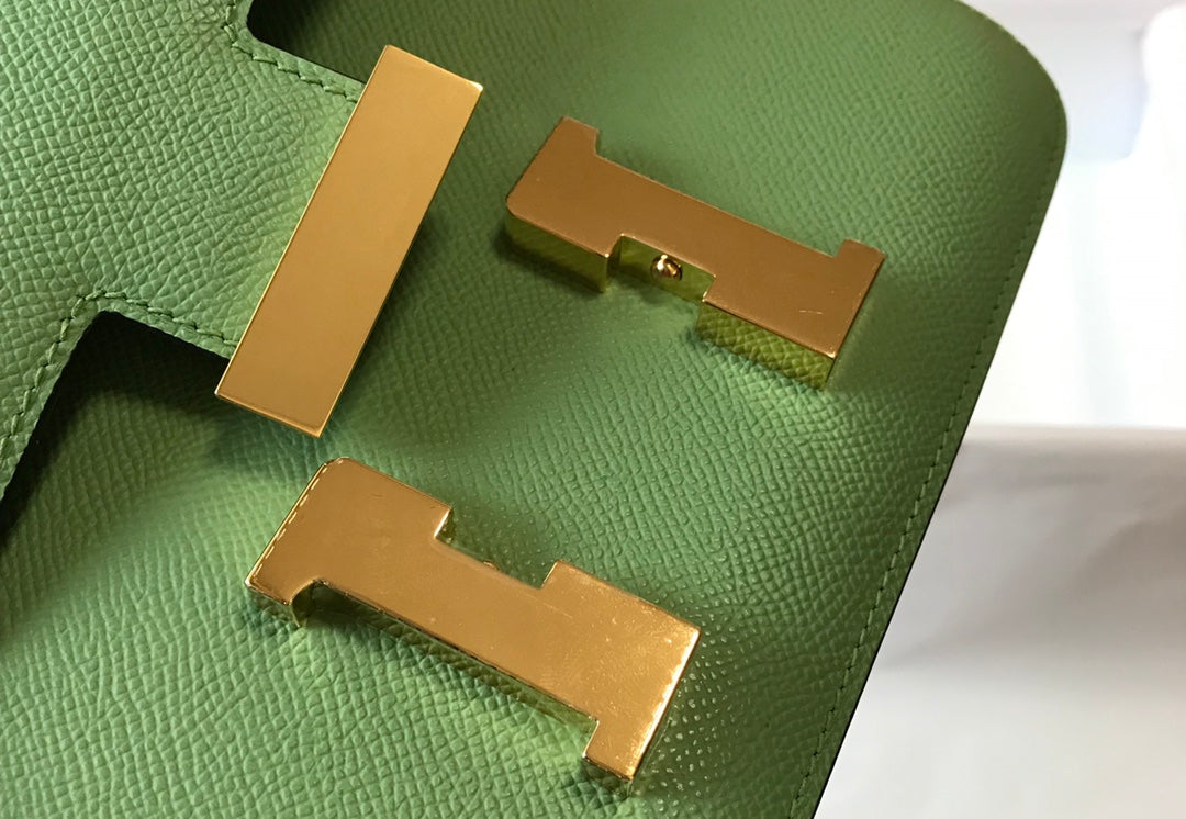 Fresh, vibrant, and irresistibly chic – the Hermès Constance 18 in green Epsom leather is a bold interpretation of timeless elegance. Its structured silhouette and radiant gold “H” clasp create a harmonious balance between luxury and playfulness.