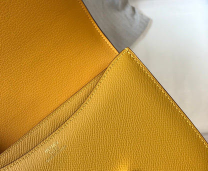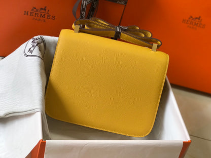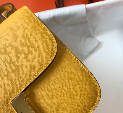 Energetic, radiant, and effortlessly chic – the Hermès Constance 18 in yellow Epsom leather brings a burst of sunshine to any look. With its signature “H” clasp in glowing gold hardware, this compact bag is a joyful celebration of iconic design and fine craftsmanship.