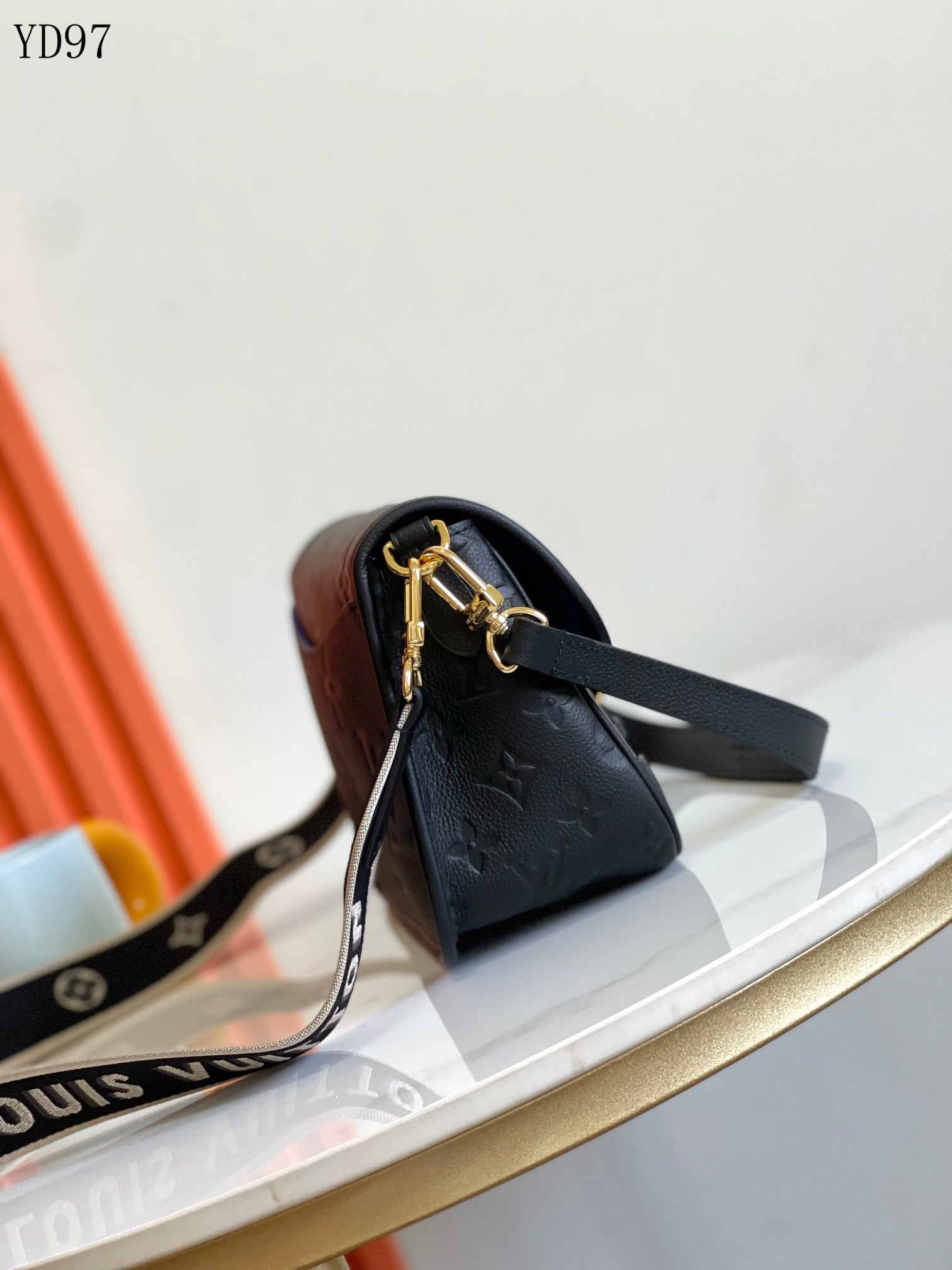 Straps: Removable and adjustable wide jacquard strap with “Louis Vuitton” embroidery + slim leather shoulder strap