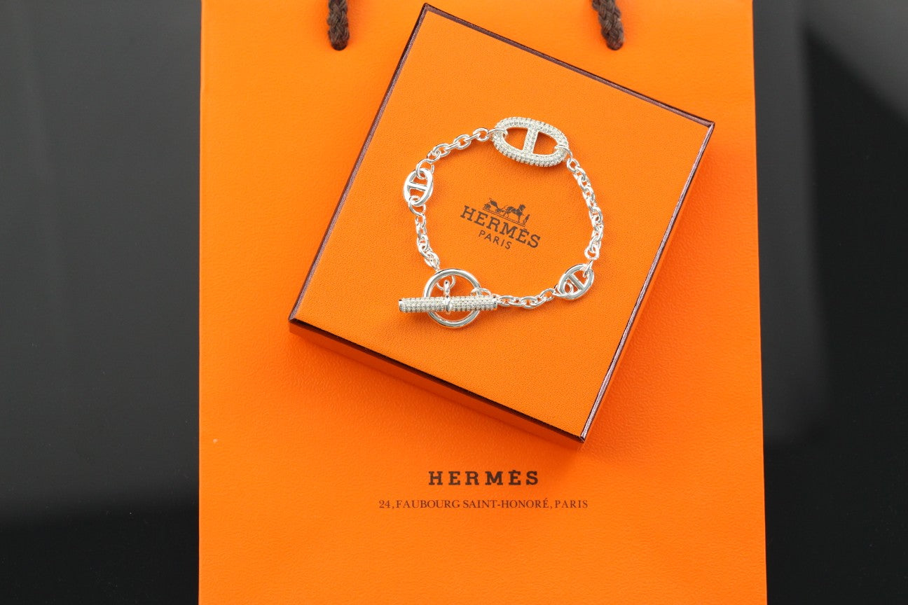 Expertly made from high-quality sterling silver, this bracelet showcases Hermès’ masterful jewelry craftsmanship. The pavé detailing adds a luxurious touch to the classic link design, making it both iconic and contemporary.