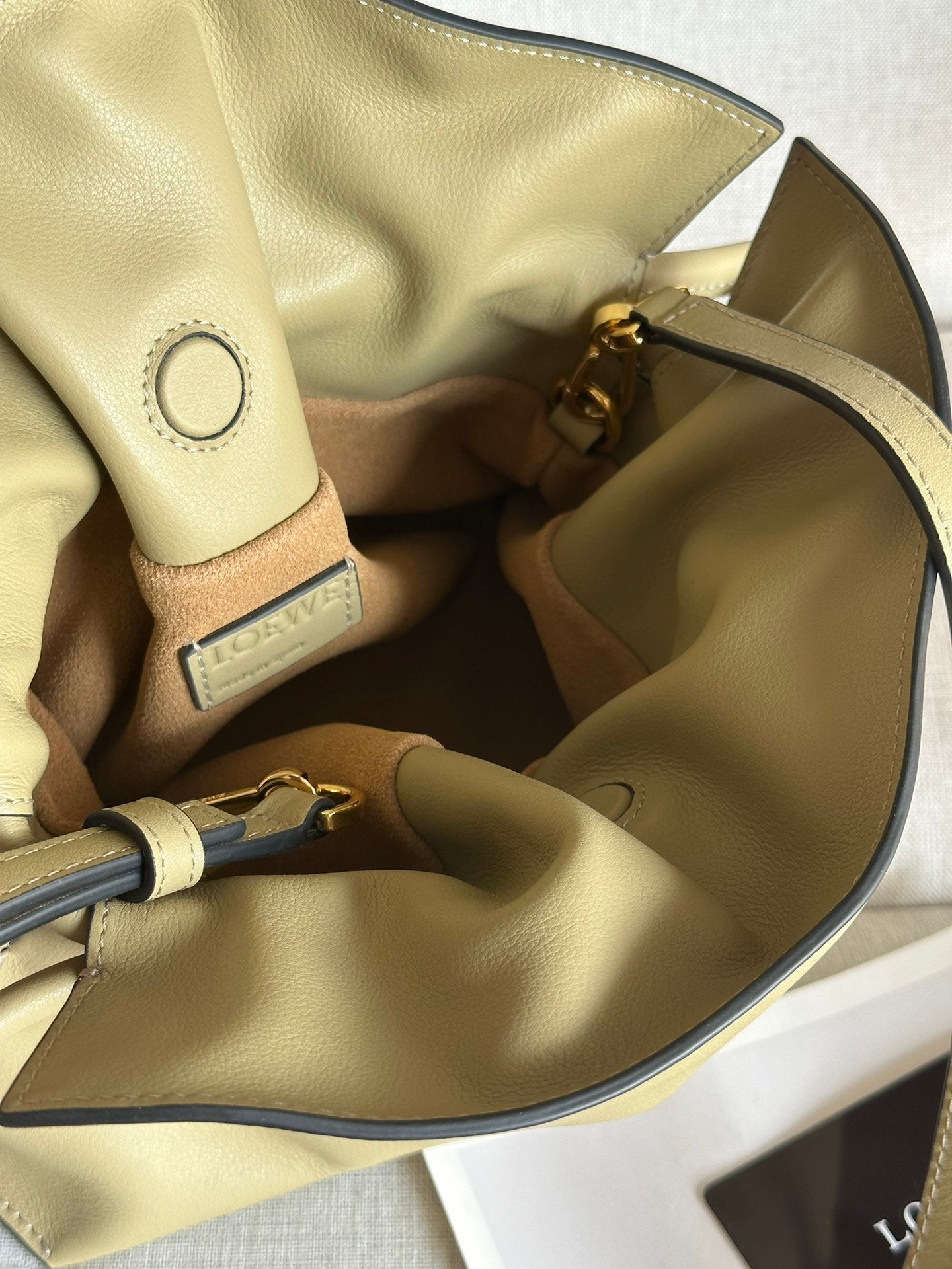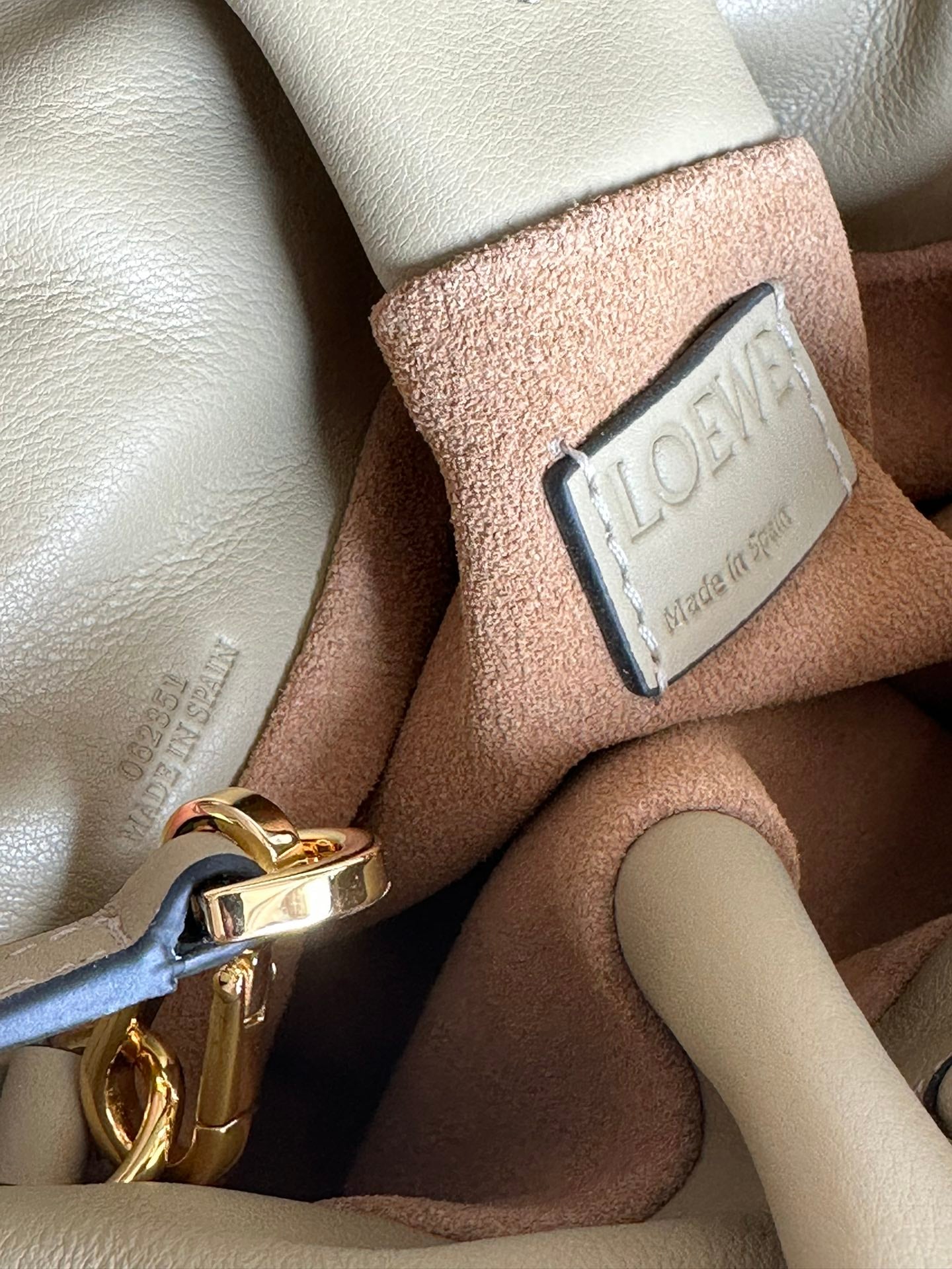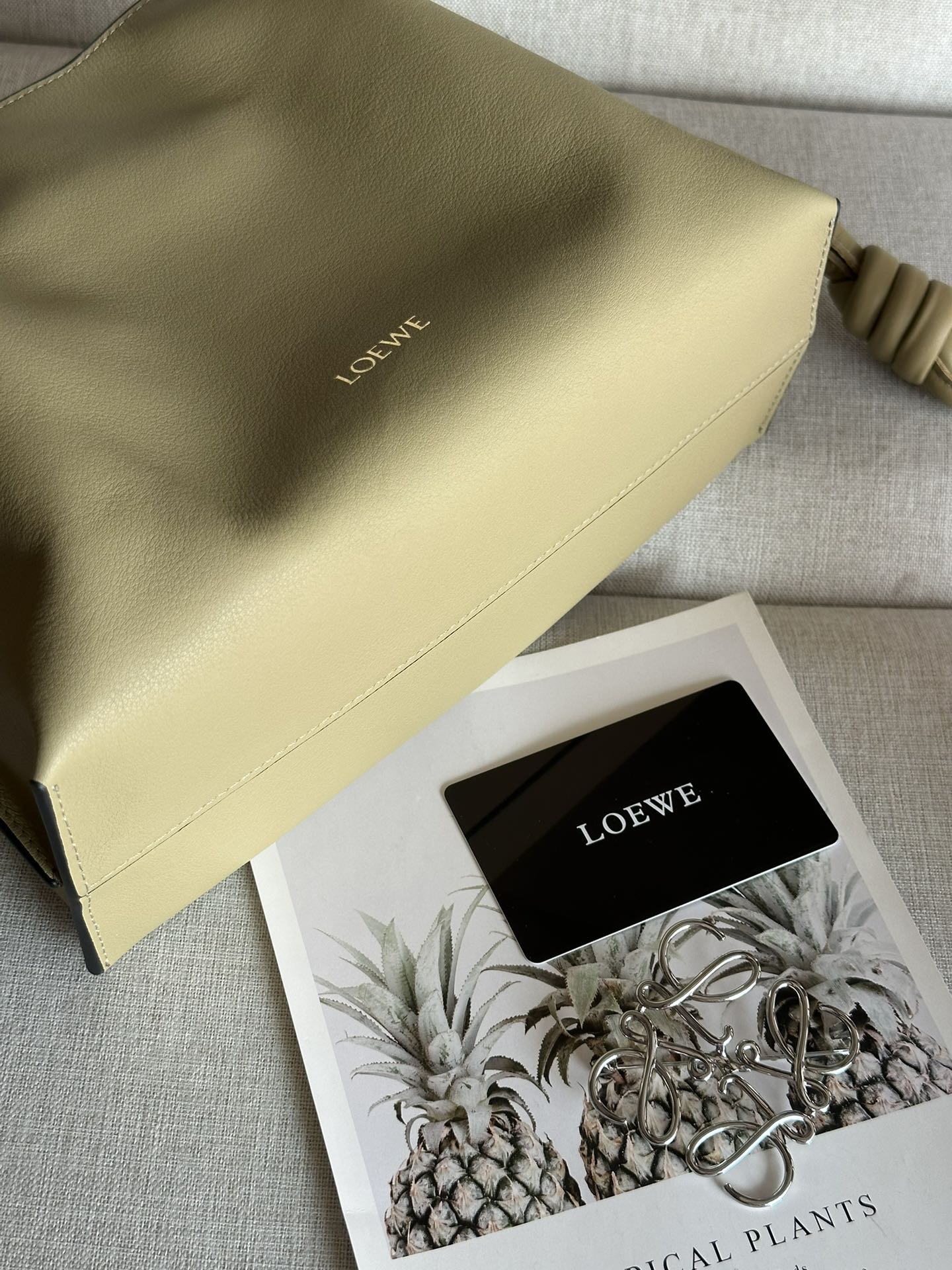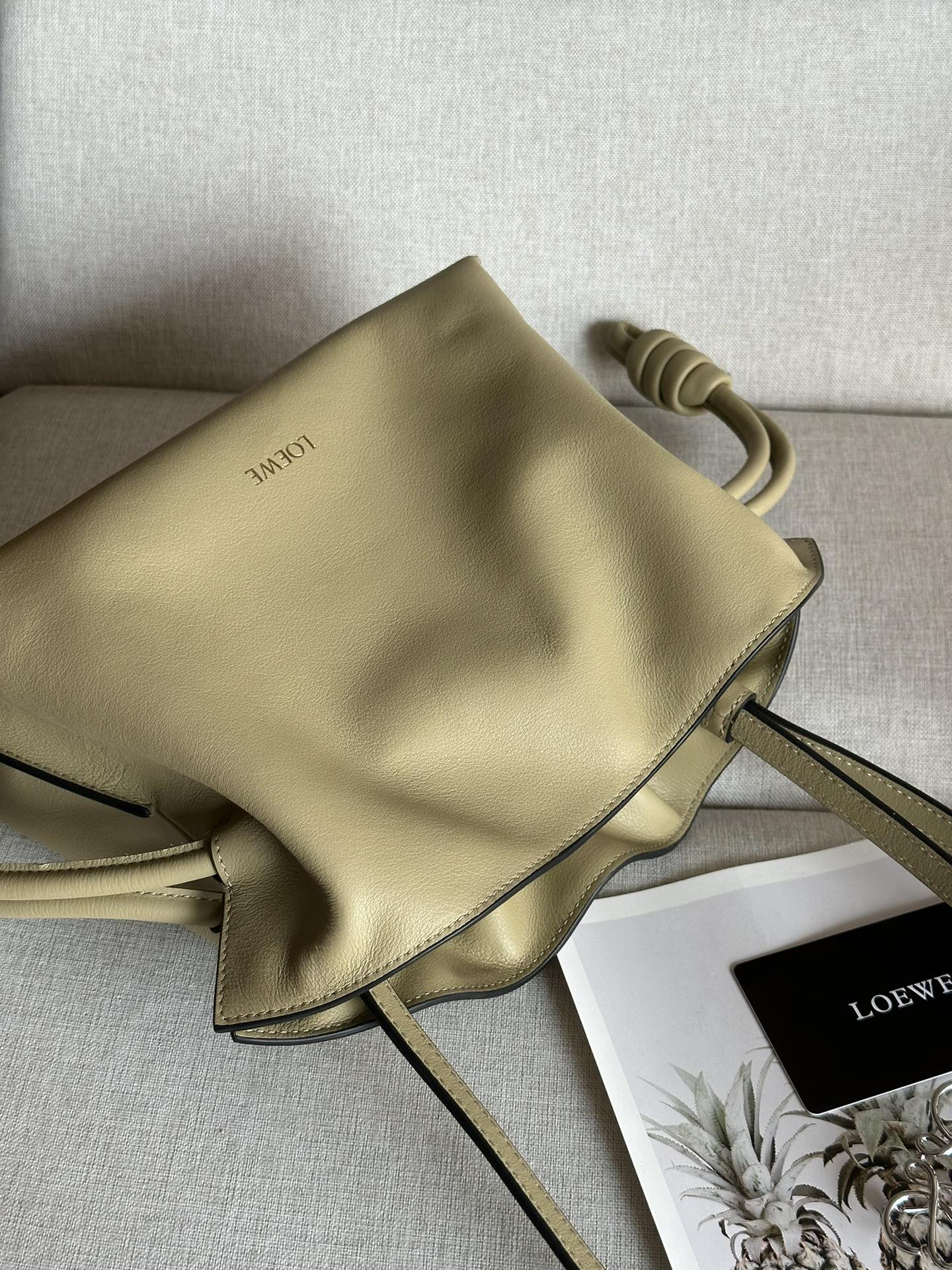 The Loewe Flamenco bag is a modern classic that blends soft structure with sculptural charm. Crafted from smooth calfskin leather, this bag features the brand’s signature knotted drawstrings for a playful yet polished look.