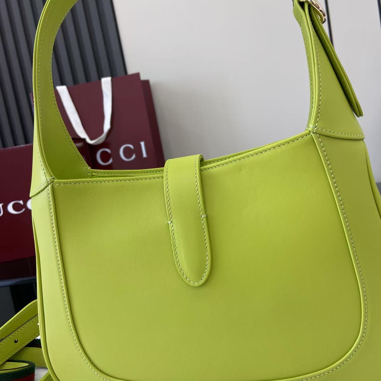Brighten your collection with the Gucci Jackie 1961 Small Hobo Bag in lime green – where timeless craftsmanship meets modern boldness. ✨