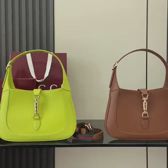 The Gucci Jackie 1961 Small Hobo Bag in vibrant lime green leather is a modern twist on one of Gucci’s most iconic designs. Featuring the signature piston closure and sleek curved silhouette, this bold colorway adds a refreshing statement to the timeless Jackie line. Perfect for those who want to stand out while keeping an elegant edge.