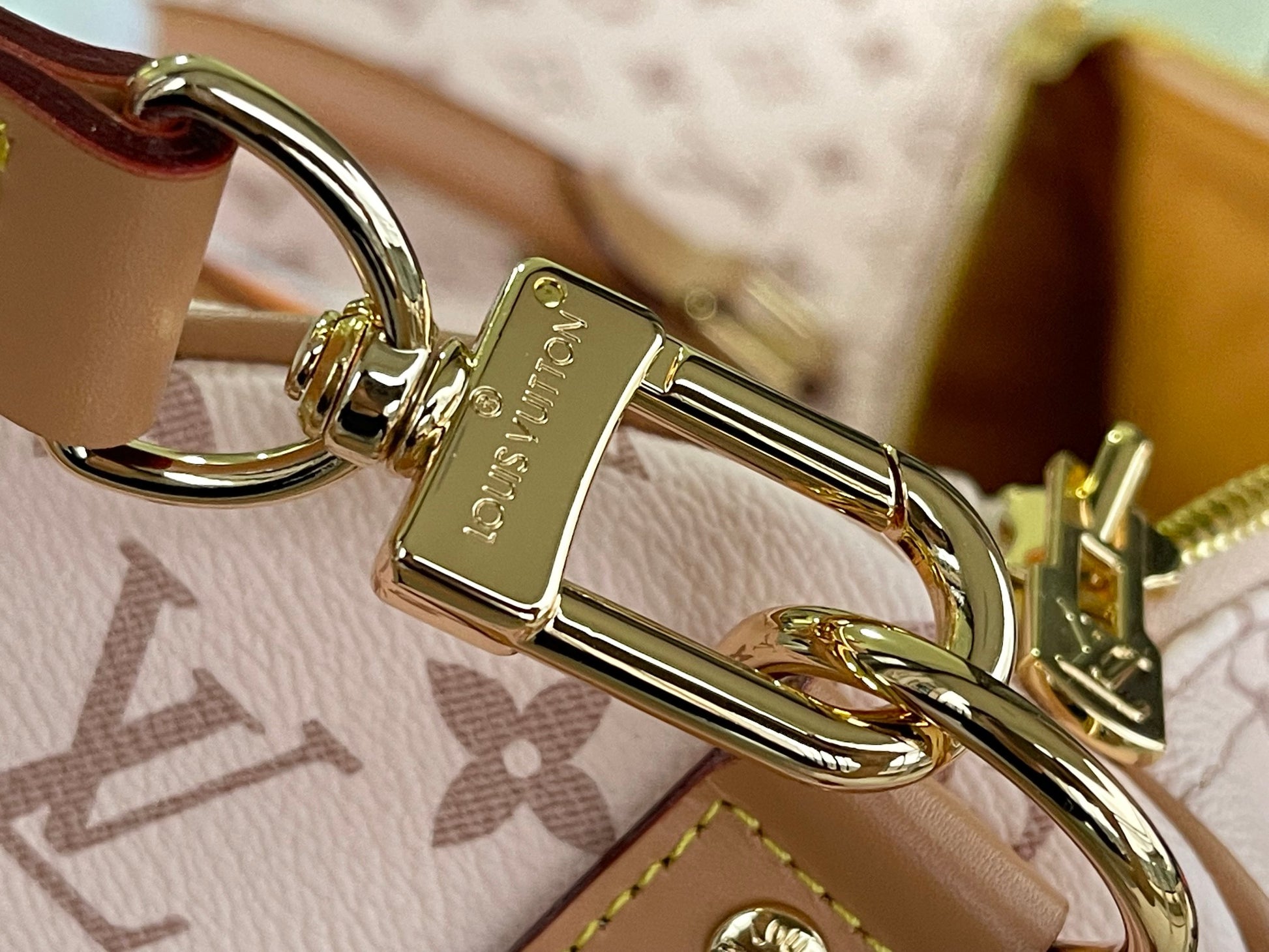 This Keepall Bandoulière 50 is more than a travel piece—it’s a fusion of timeless elegance and playful modernity. The pastel pink Monogram canvas makes it a standout for chic travelers, while the vintage-style patch pays homage to Louis Vuitton’s heritage.