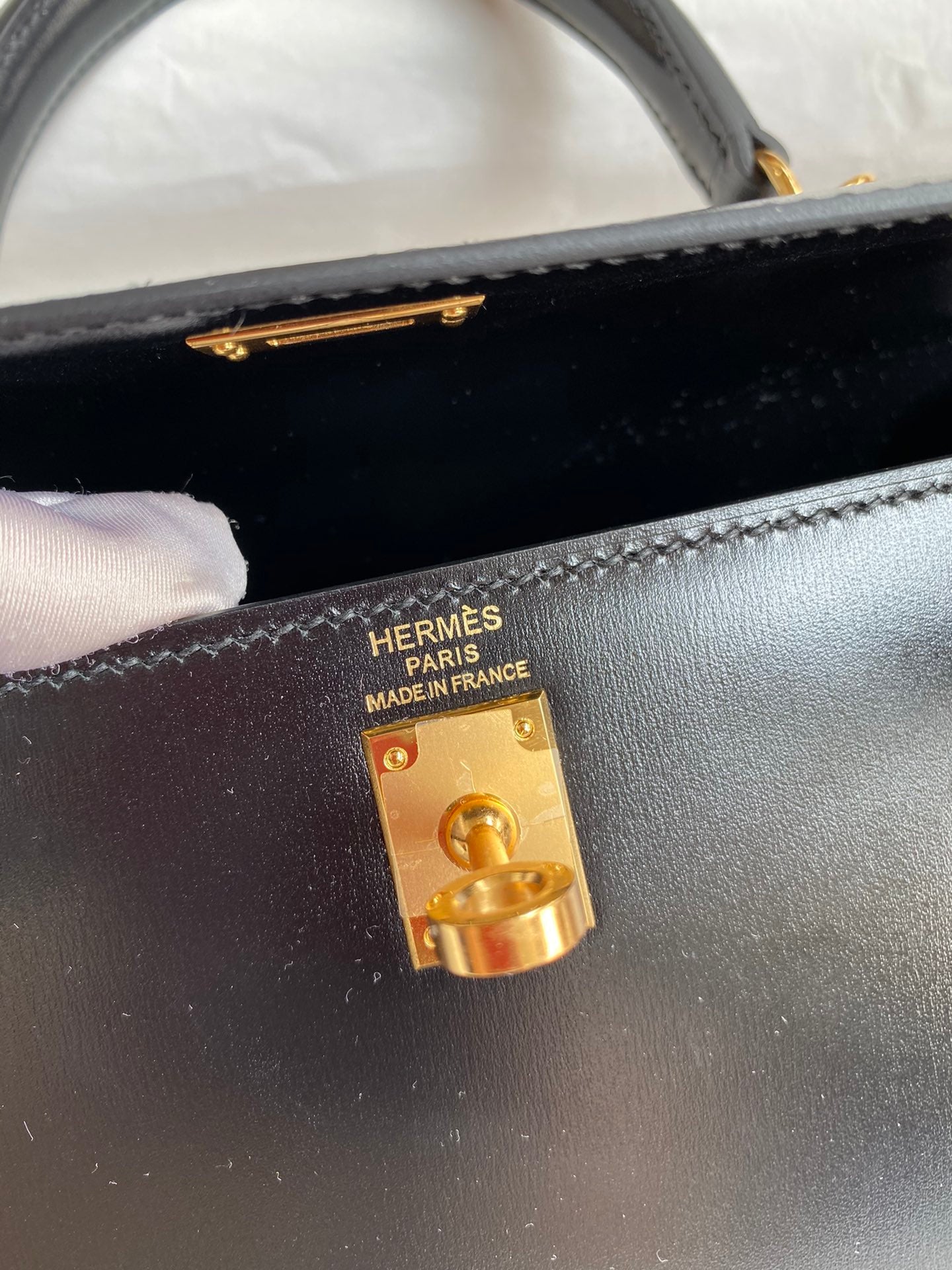 Expertly handcrafted from premium box leather, the Kelly 25cm is celebrated for its smooth finish, durability, and luxurious feel. The meticulous stitching and polished hardware highlight Hermès’ dedication to excellence and artistry.