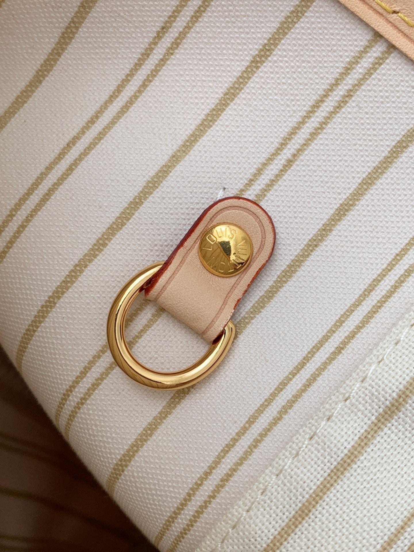 Effortlessly elegant and endlessly practical, this Louis Vuitton-inspired Neverfull MM in Damier Azur canvas is the ultimate everyday tote. With its structured yet slouchy silhouette, natural leather accents, and detachable pouch, it transitions seamlessly from city streets to weekend getaways in timeless style.