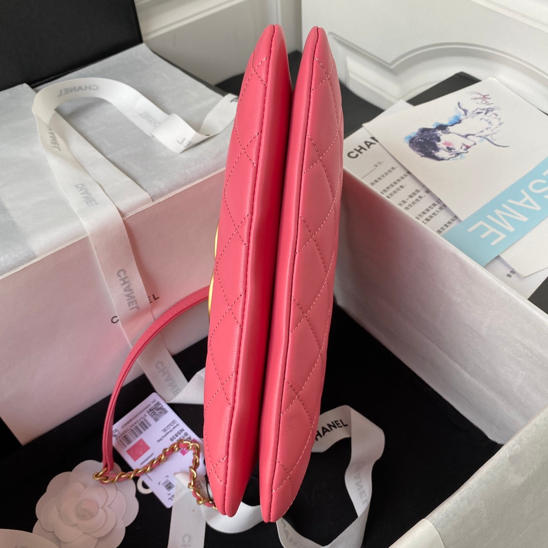 Expertly crafted from supple lambskin leather, this eye-catching piece features Chanel’s iconic diamond quilting and an oversized matte gold CC logo for a stunning vintage flair. The rich pink tone offers a playful yet sophisticated edge.