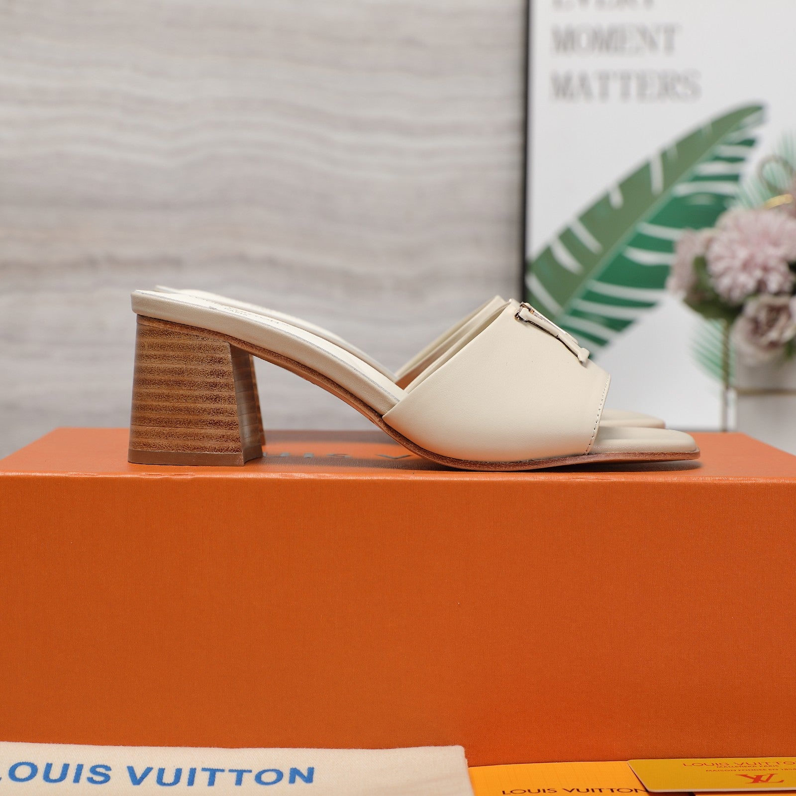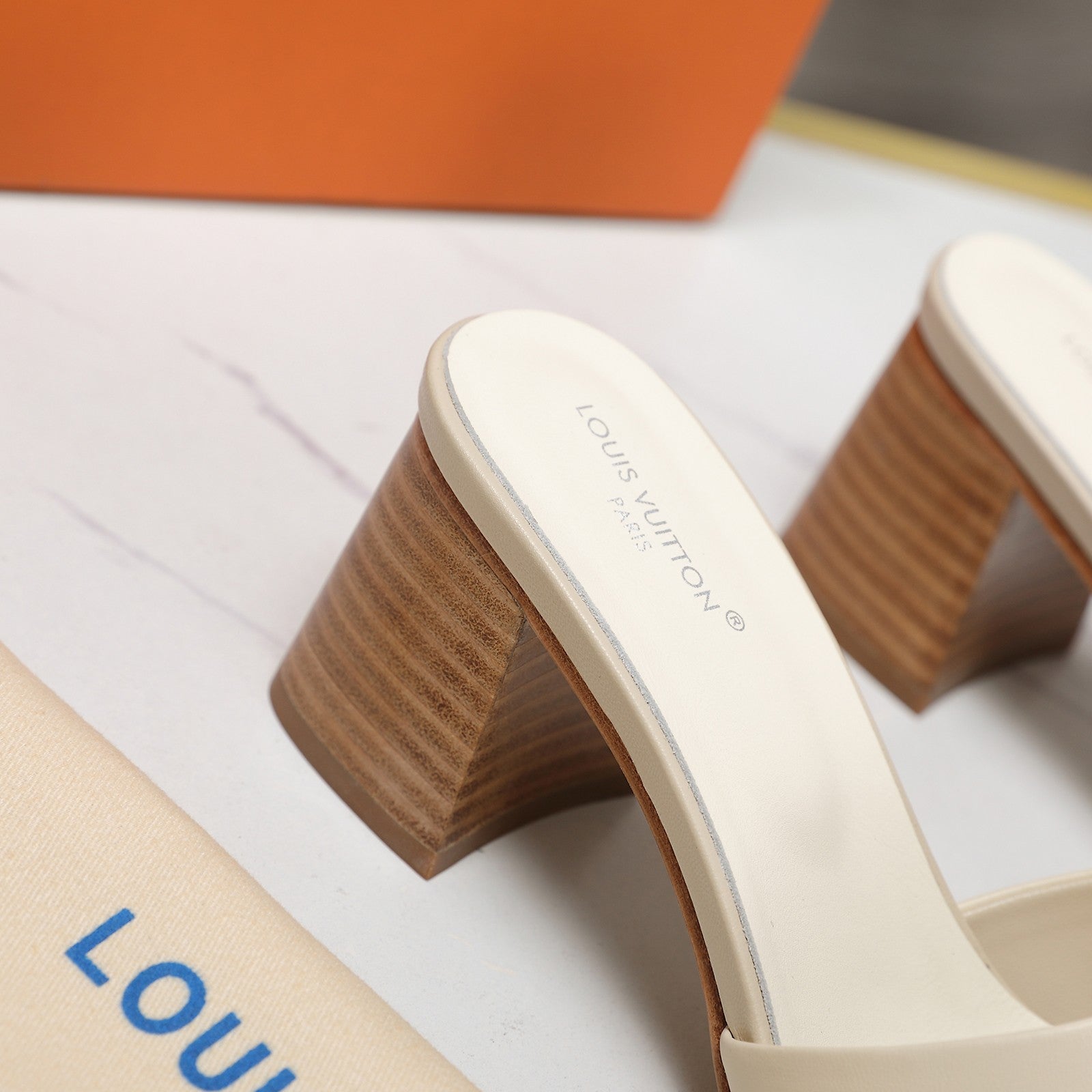 Step into elevated elegance with these Louis Vuitton-style high-heeled slippers. Designed for the modern woman who values both sophistication and comfort, these slippers feature a sleek cream white finish, sculpted silhouette, and the iconic LV emblem. Perfect for summer strolls or chic evenings out, they pair effortlessly with both casual and upscale outfits.
