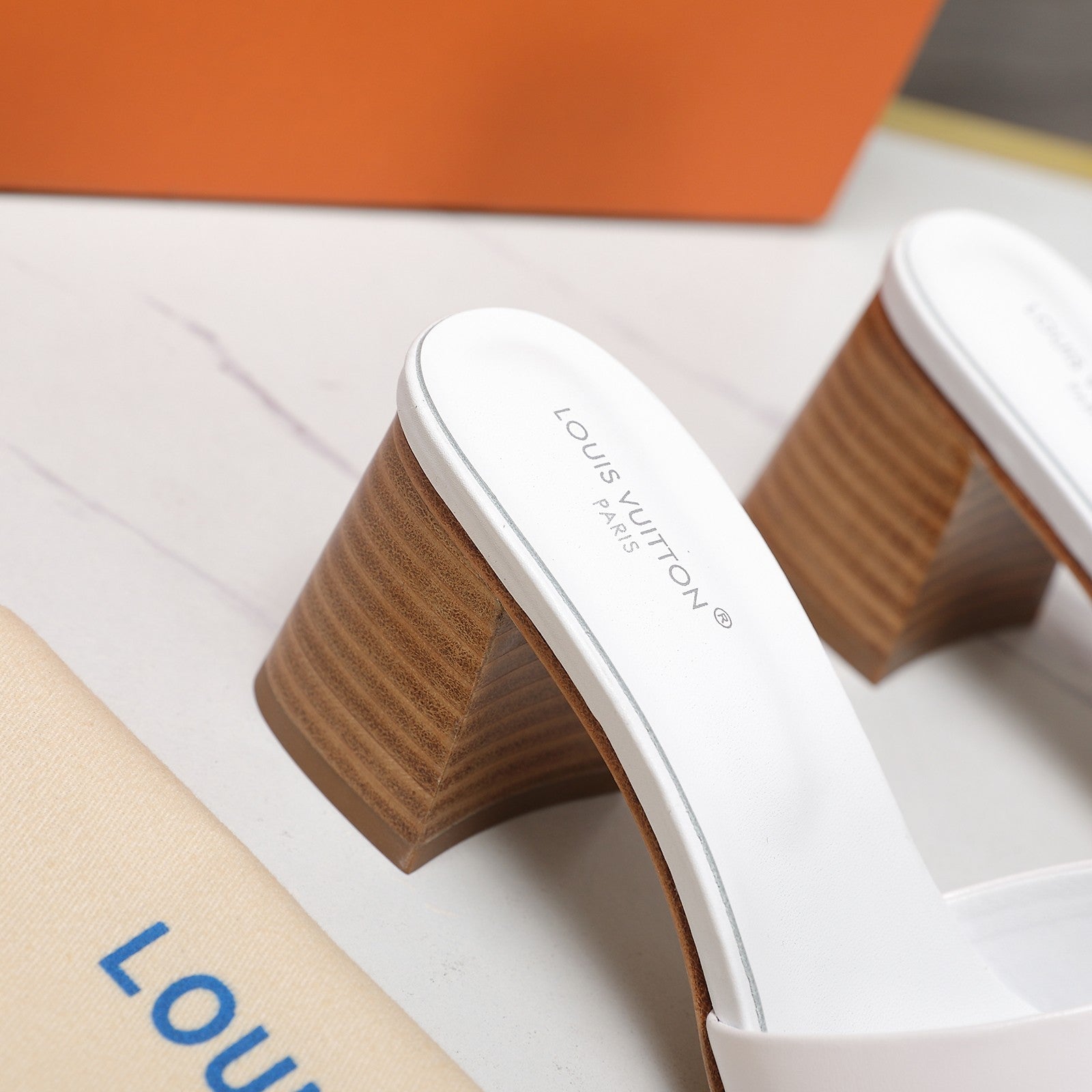 Elegance meets versatility in these high-heeled Louis Vuitton-inspired slippers. Crafted from smooth, premium leather and finished with the iconic LV-style logo detail, these slip-on heels are a timeless addition to your luxury wardrobe. Whether styled for a day out or an evening occasion, they deliver effortless sophistication with every step.