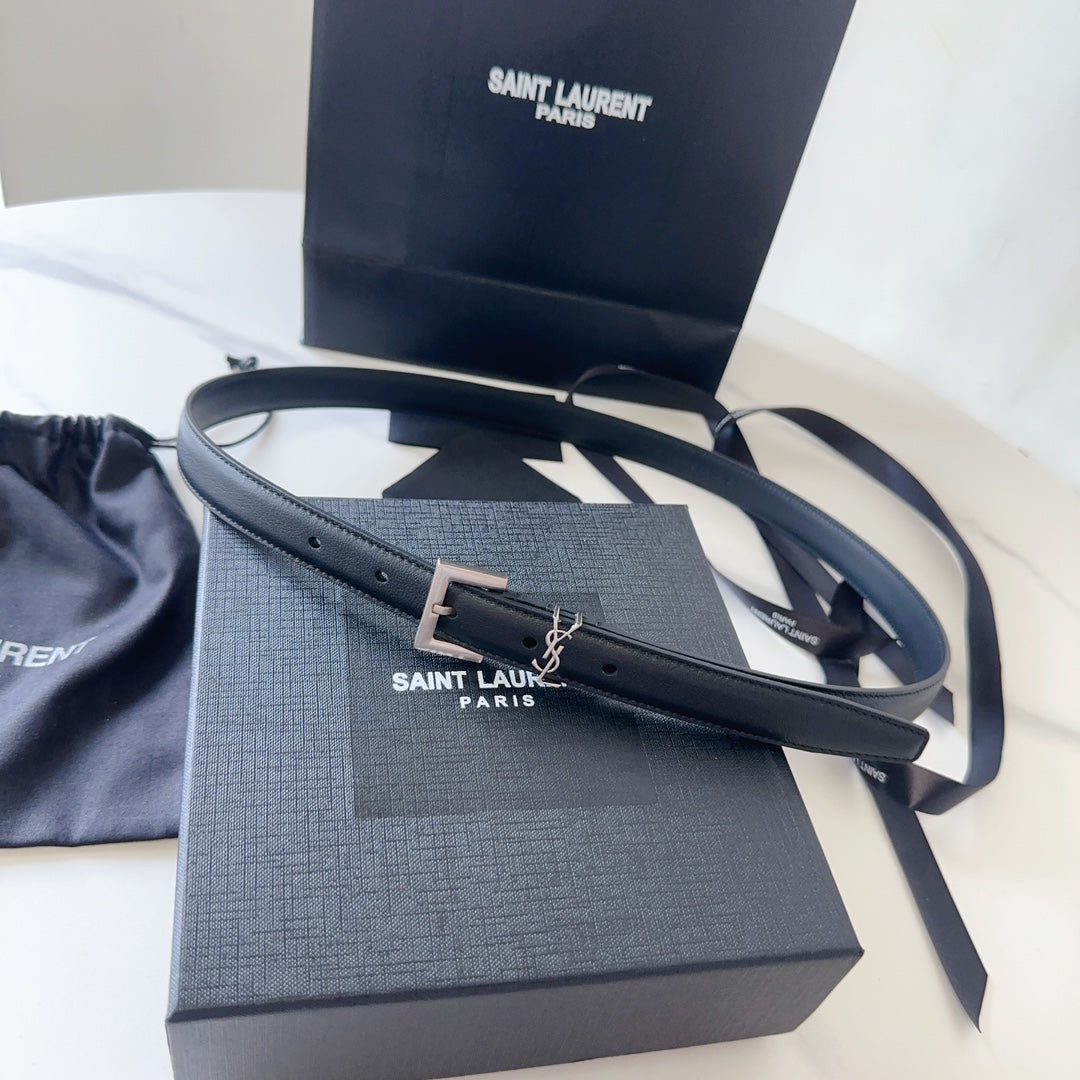 Refined and effortlessly chic, this Saint Laurent style belt is the perfect finishing touch to elevate any look. Designed with a sleek black leather strap and finished with a striking silver-tone YSL-style buckle, it brings structured elegance and modern edge to your wardrobe.