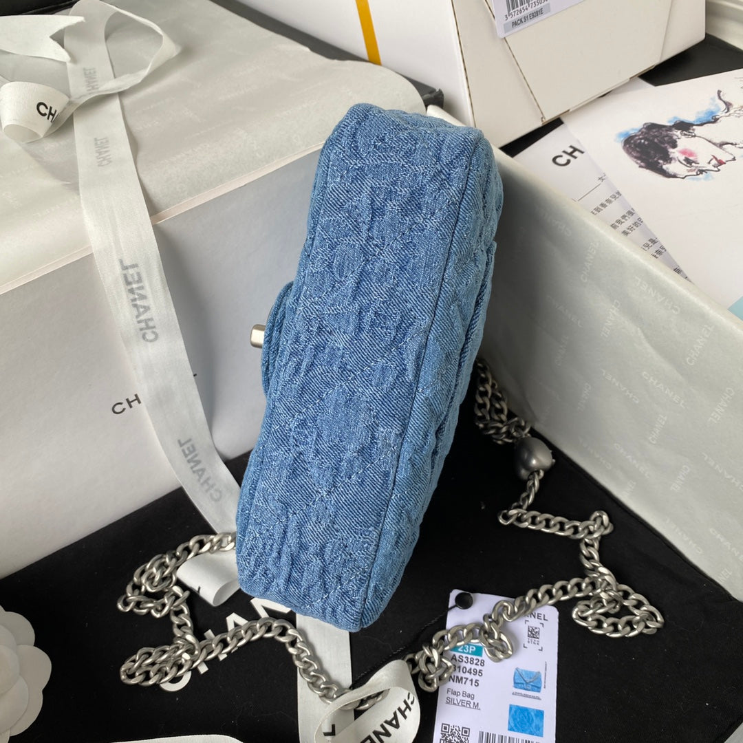 This exquisite Chanel mini flap bag redefines casual elegance with its playful denim texture and signature details. Perfectly sized for light essentials, it blends youthful charm with timeless luxury.