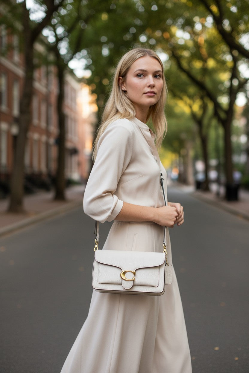 Radiant, refined, and effortlessly versatile — the Coach Mini Tabby Chain Bag in white leather adds a luxurious finishing touch to your everyday style.
