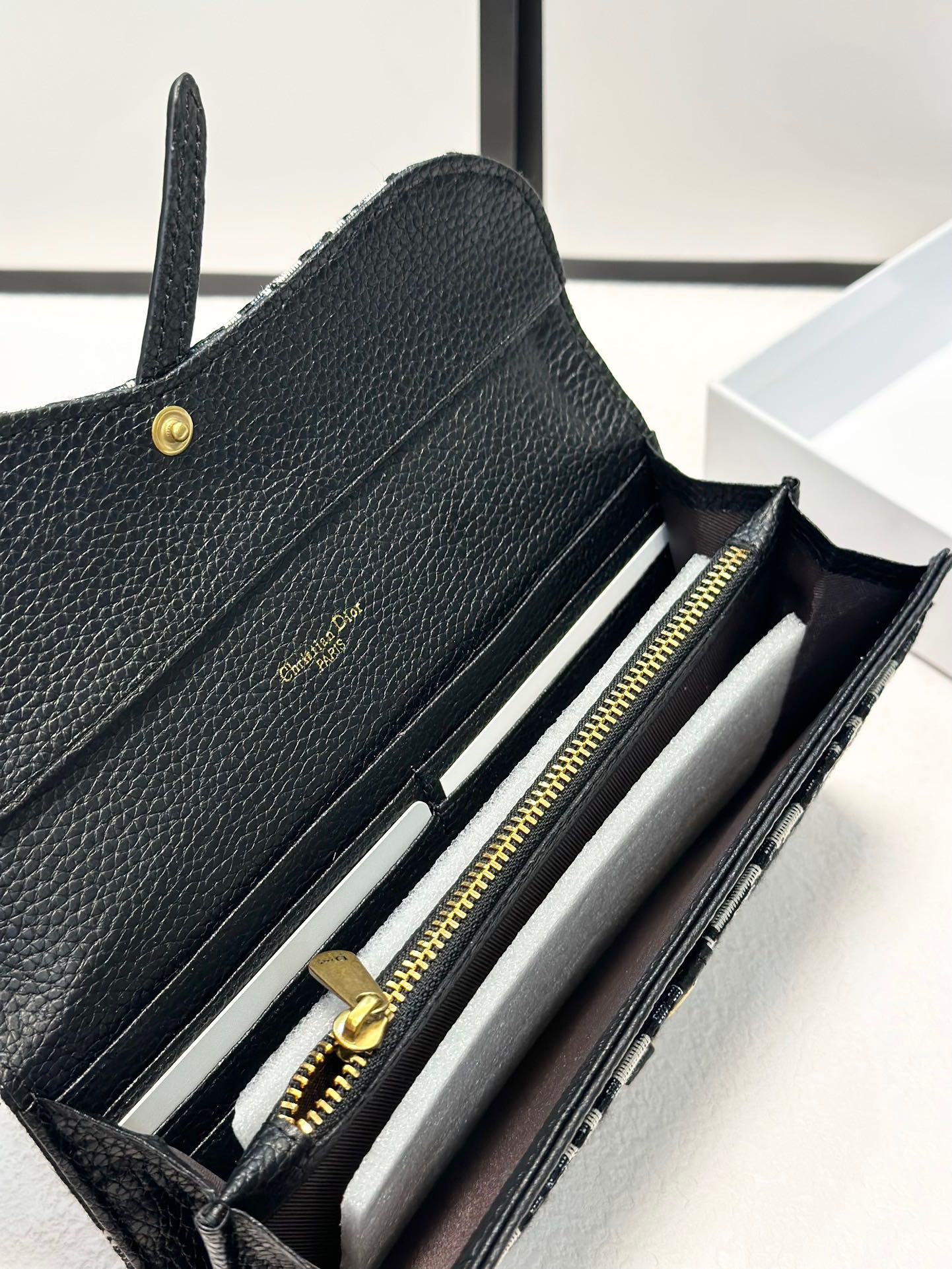 Timelessly elegant with a contemporary twist, this Dior long wallet is crafted from signature Oblique canvas and detailed with a sleek leather trim. The iconic jacquard pattern and gold-tone "D" charm make this piece an instant standout in any luxury accessory collection.