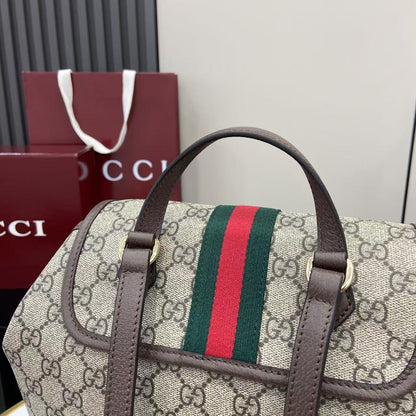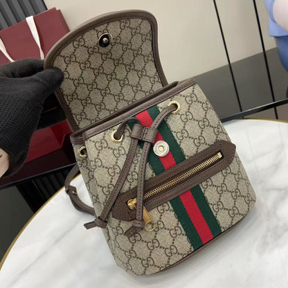 The Gucci Ophidia GG Supreme Backpack blends heritage design with modern practicality. Crafted from the iconic GG Supreme canvas and accented with the signature green-red-green web stripe, this backpack embodies Gucci’s timeless style. Its structured silhouette, functional compartments, and classic detailing make it an essential choice for both daily use and travel.