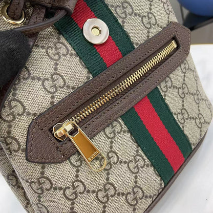 The Gucci Ophidia Mini GG Supreme Backpack offers a compact yet stylish take on one of Gucci’s most iconic designs. Crafted from GG Supreme canvas with the signature green-red-green web stripe and classic double G hardware, this backpack delivers luxury in a functional, everyday size. Perfect for those who value both heritage design and modern practicality.