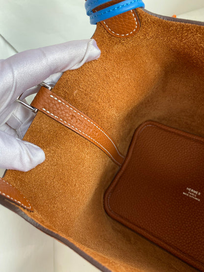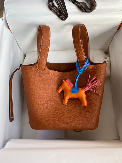 Understated yet iconic, the Hermès Picotin 18 is a minimalist masterpiece inspired by equestrian heritage. Its clean lines, open-top design, and compact form bring together practicality and effortless elegance in a truly timeless silhouette.