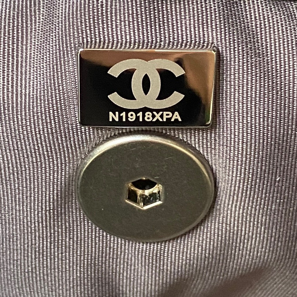 The Chanel 24C 19 Backpack in grey effortlessly combines classic elegance with a modern silhouette. Crafted from supple quilted lambskin and adorned with the iconic interwoven ruthenium CC logo, this piece reimagines practicality with a fashion-forward twist.