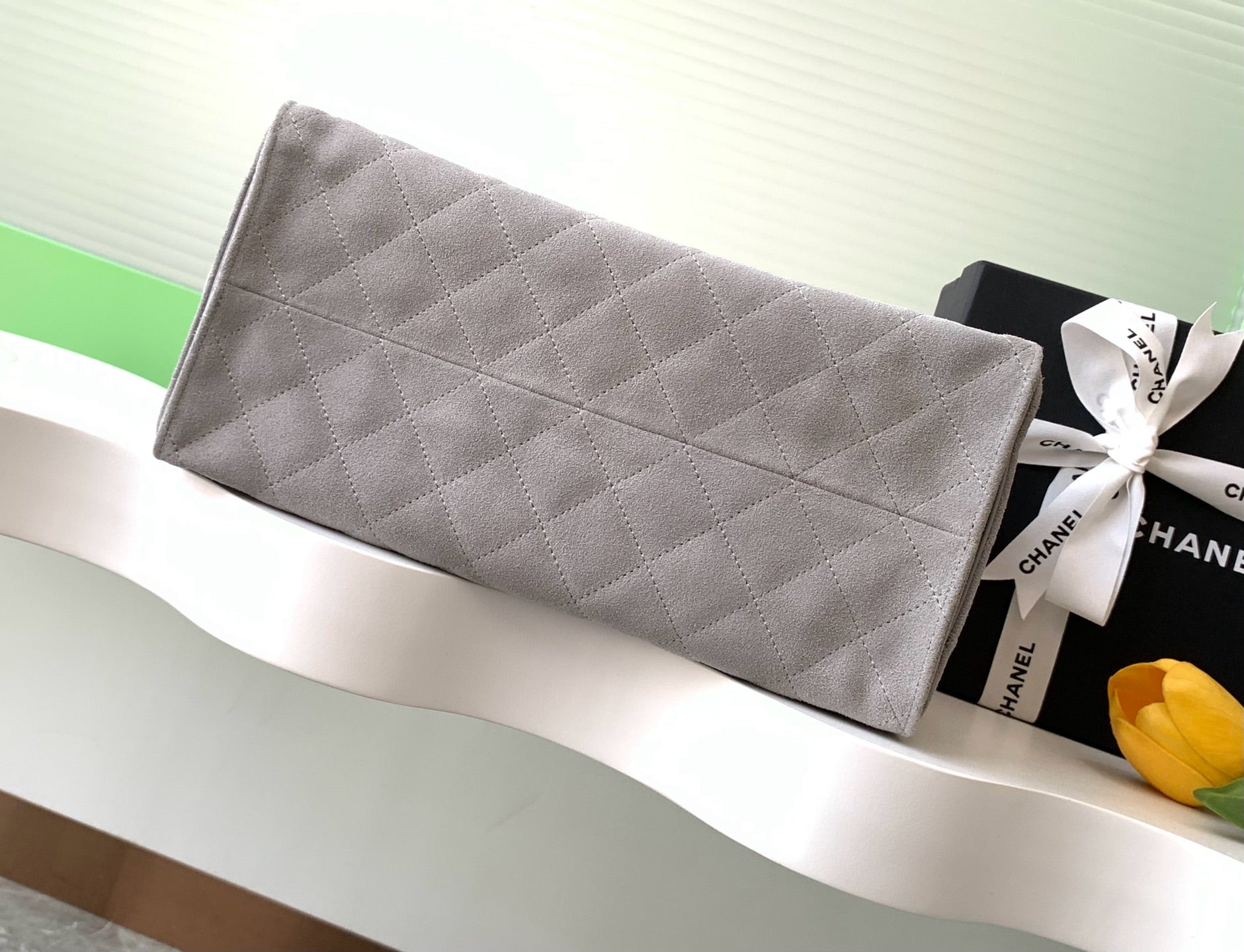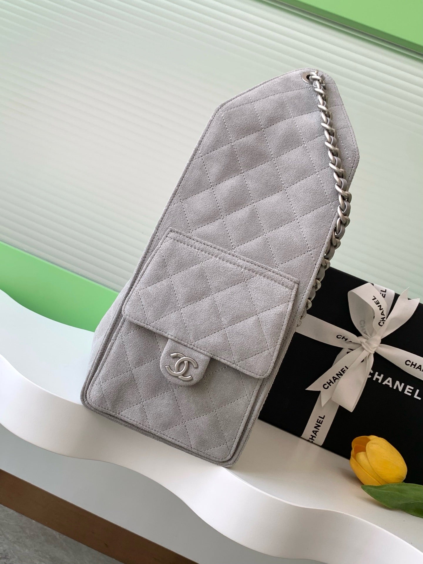 An embodiment of refined sophistication, this grey Chanel-inspired bucket bag merges timeless elegance with contemporary charm. Crafted from plush suede and adorned with signature quilted stitching, it’s the perfect accessory for women who appreciate understated luxury.