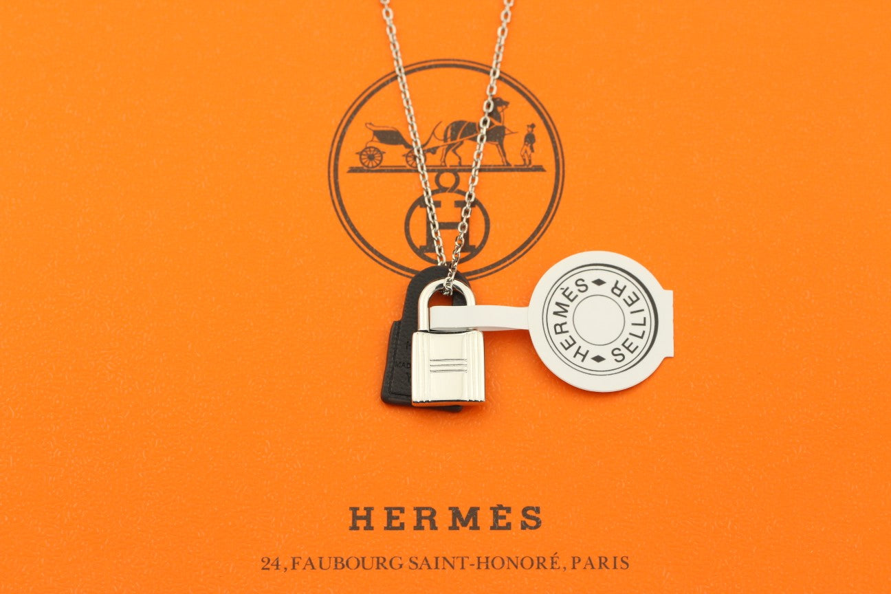Charms: Miniature padlock and Hermès Sellier-style tag