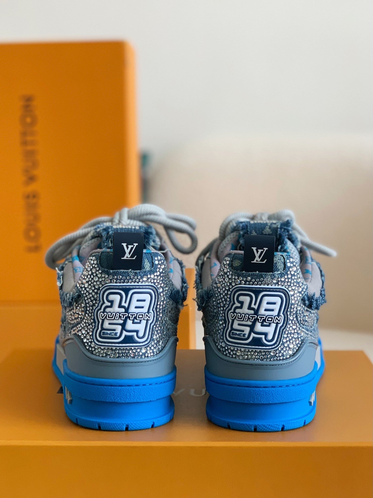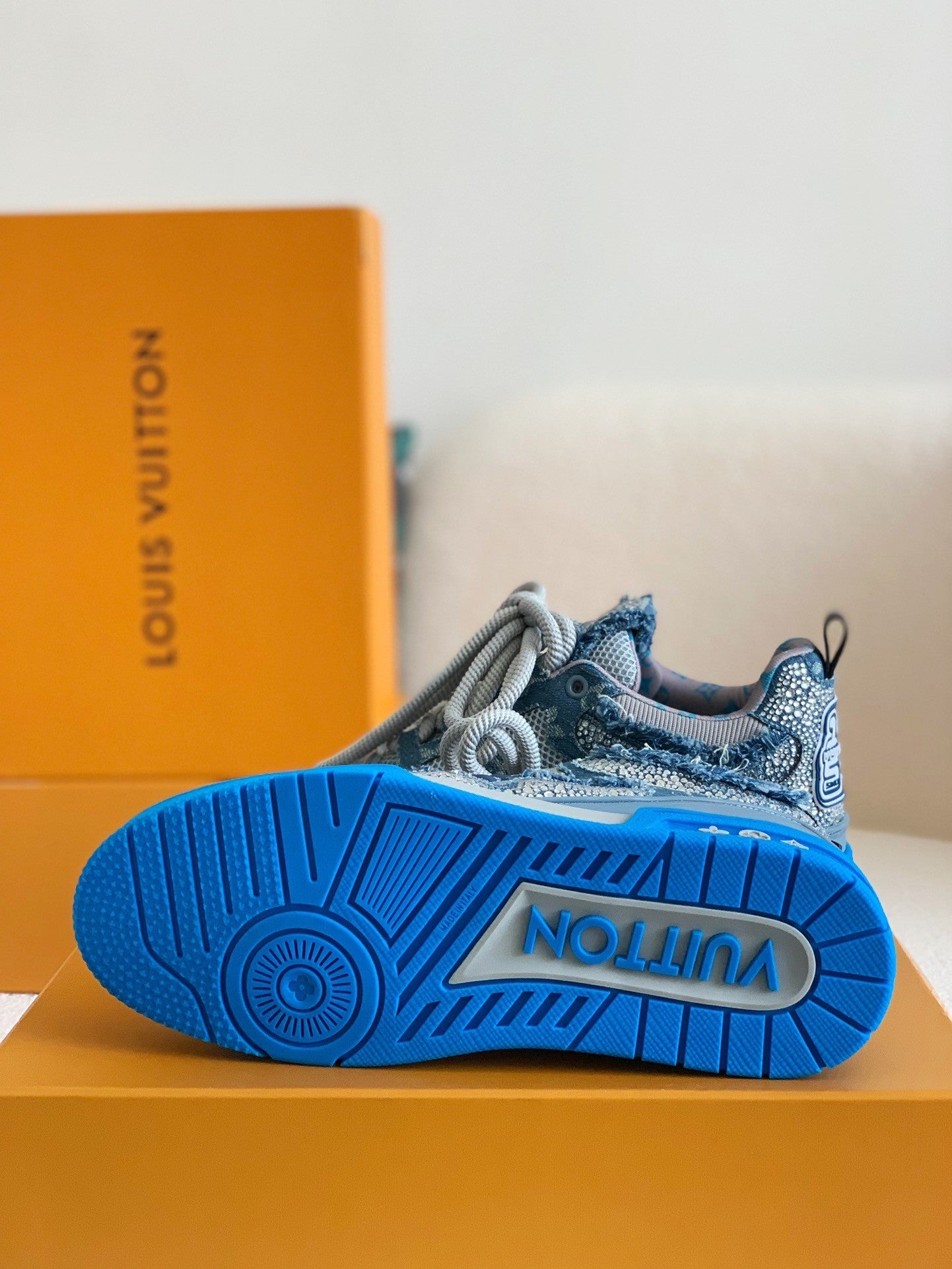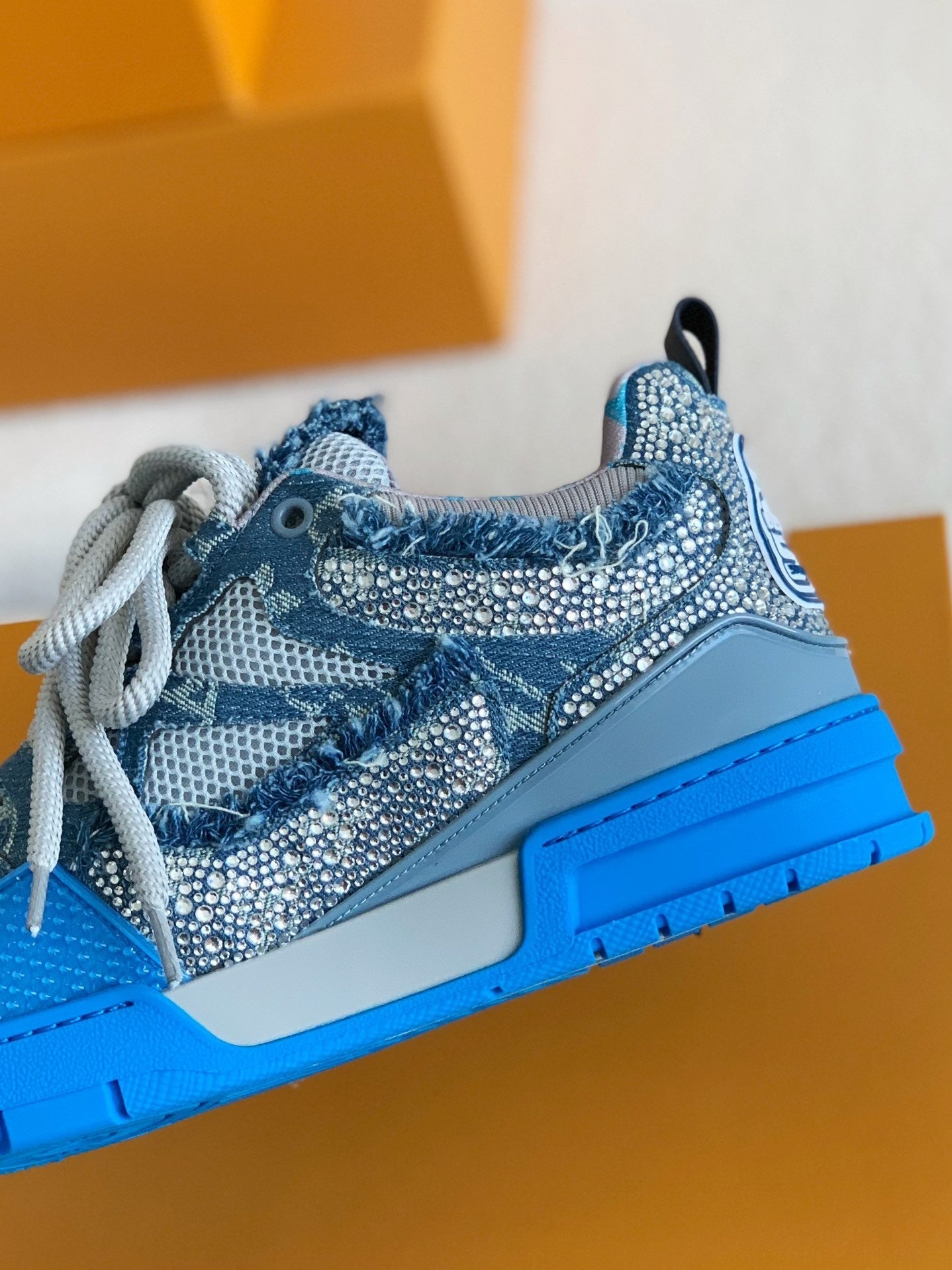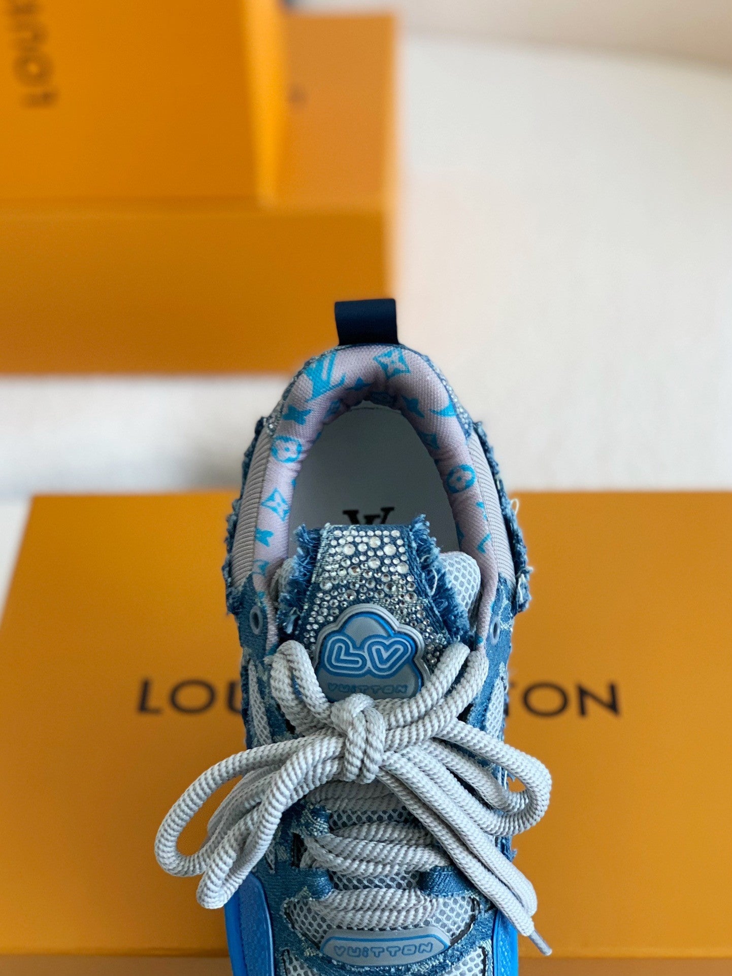 ✓ Premium-grade materials – Featuring a genuine leather upper combined with monogram denim fabric for a unique and luxurious texture