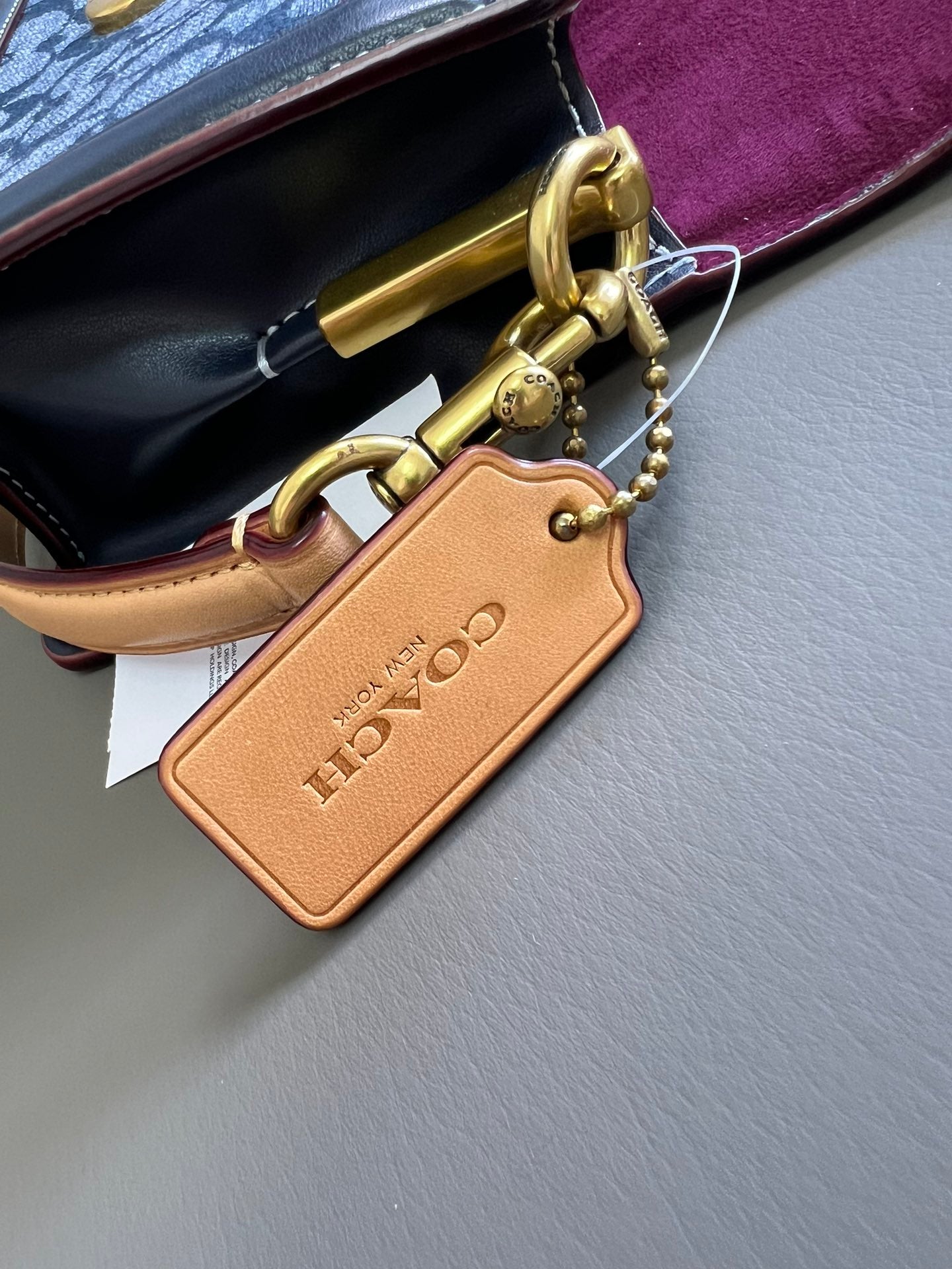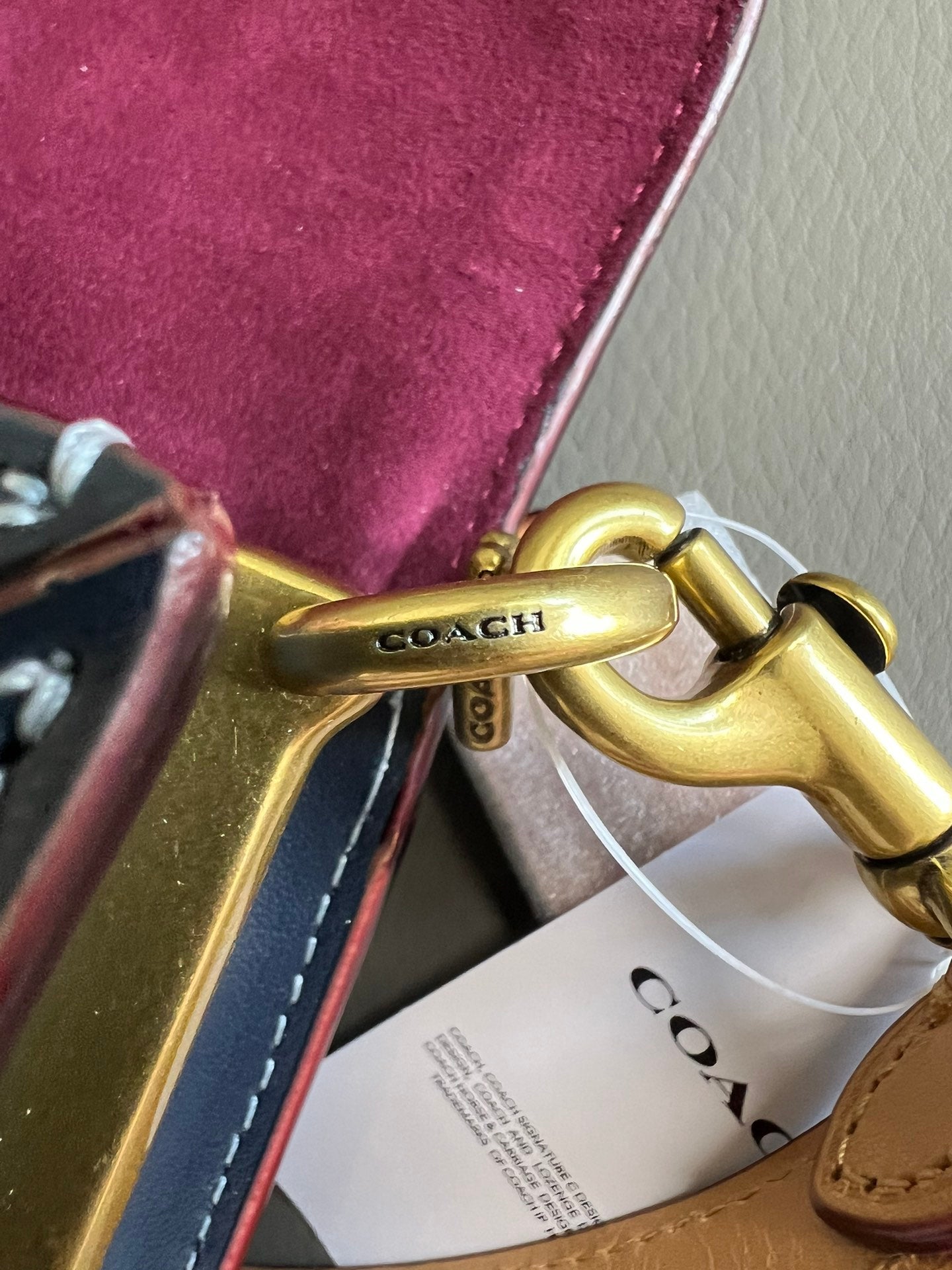 Polished gold-tone “C” hardware and magnetic flap closure