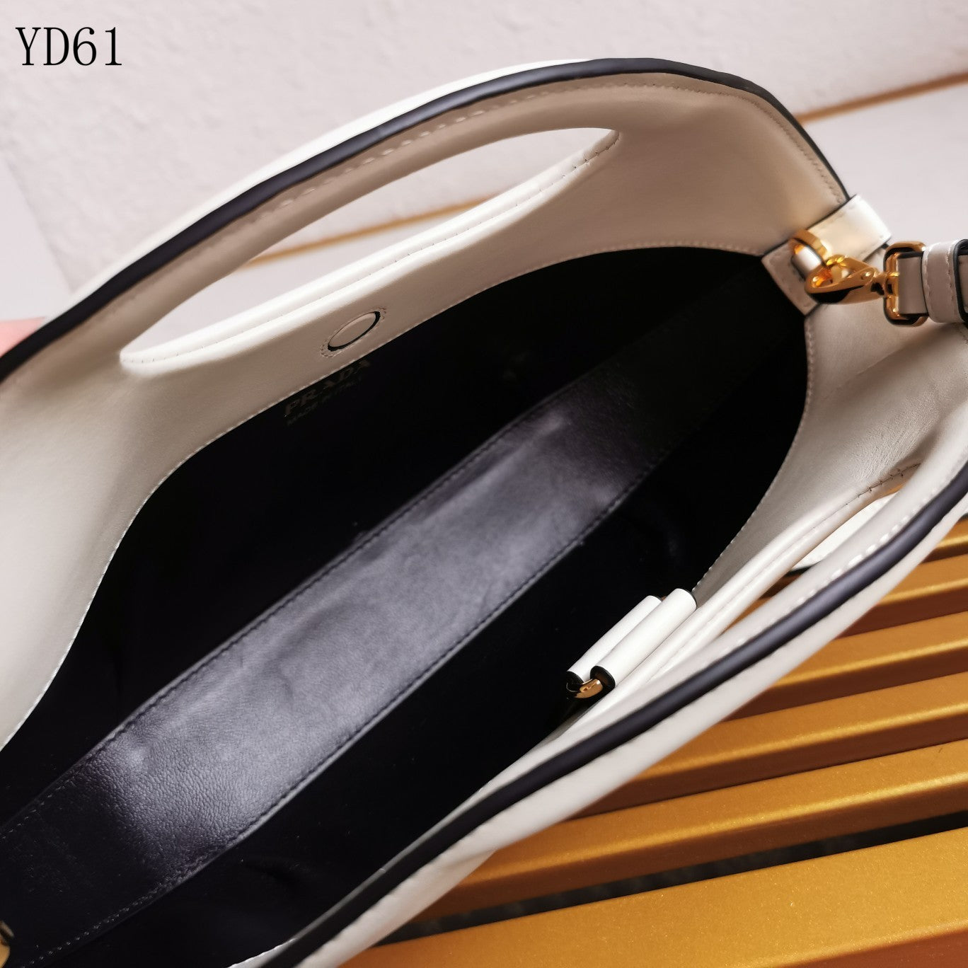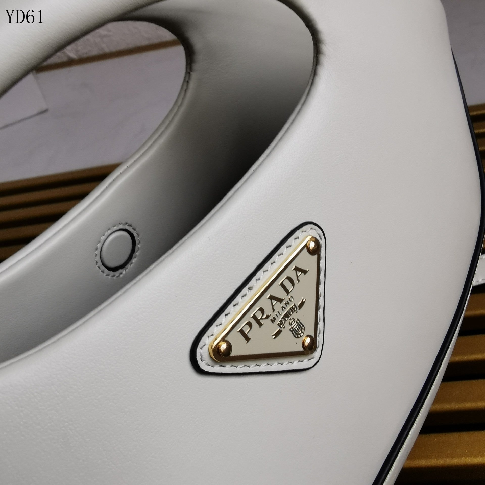 Hardware: Gold-tone triangle Prada logo and elegant accents.