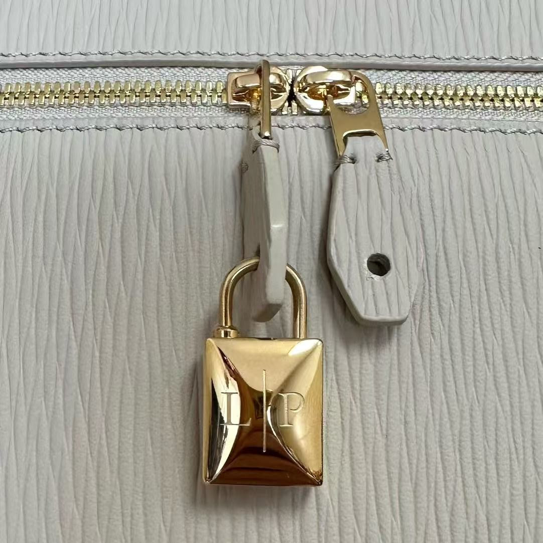 Double gold-tone zipper with signature LP logo pullers and an attached leather charm.