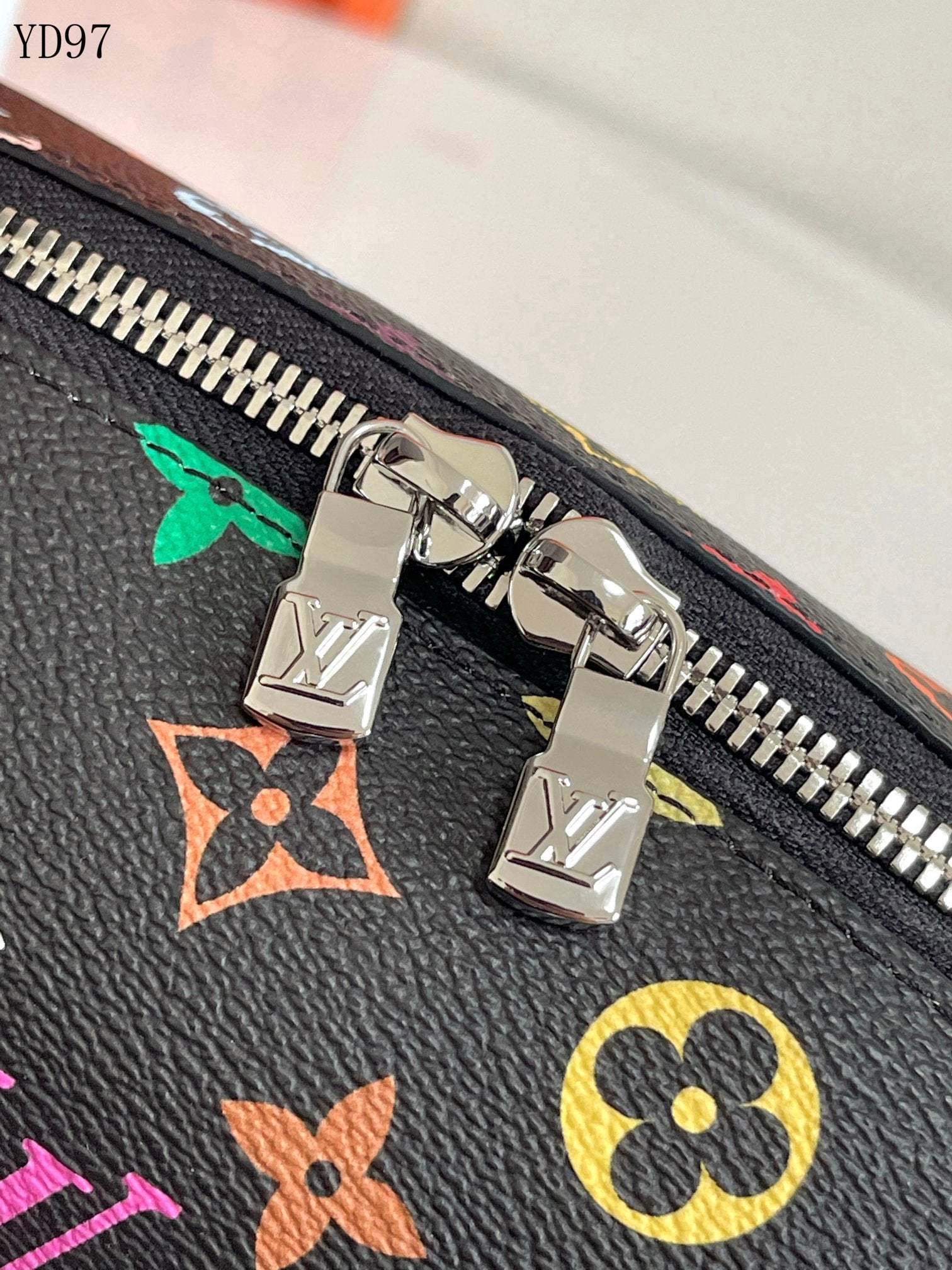 Double zip closure with engraved LV pulls