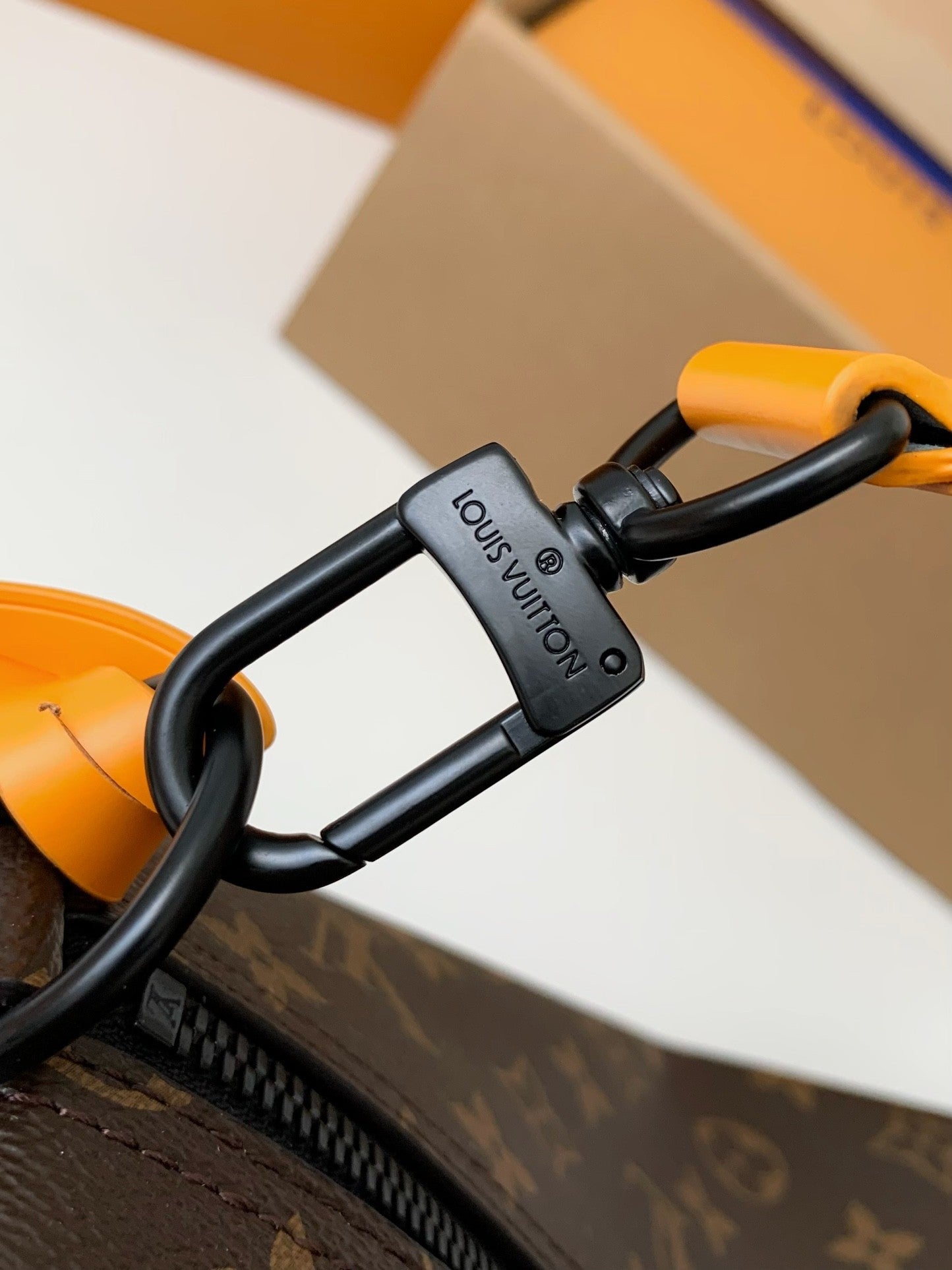Infused with urban flair and casual luxury, this Louis Vuitton-inspired 2023 Soft Polochon Bag is the ultimate go-everywhere accessory. Its lightweight cylindrical shape, iconic monogram canvas, and bold orange leather detailing make it a standout piece perfect for both men and women on the move.